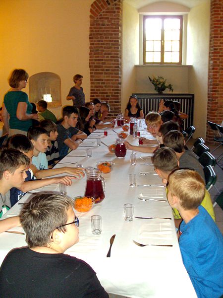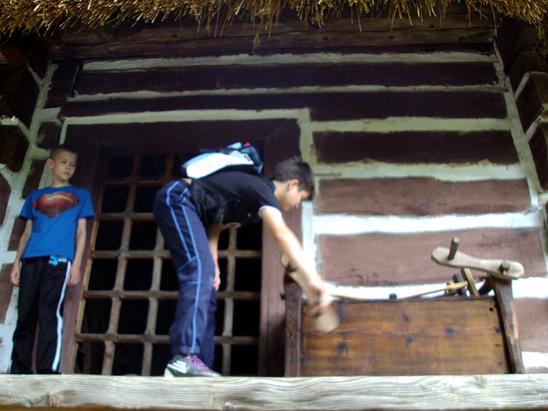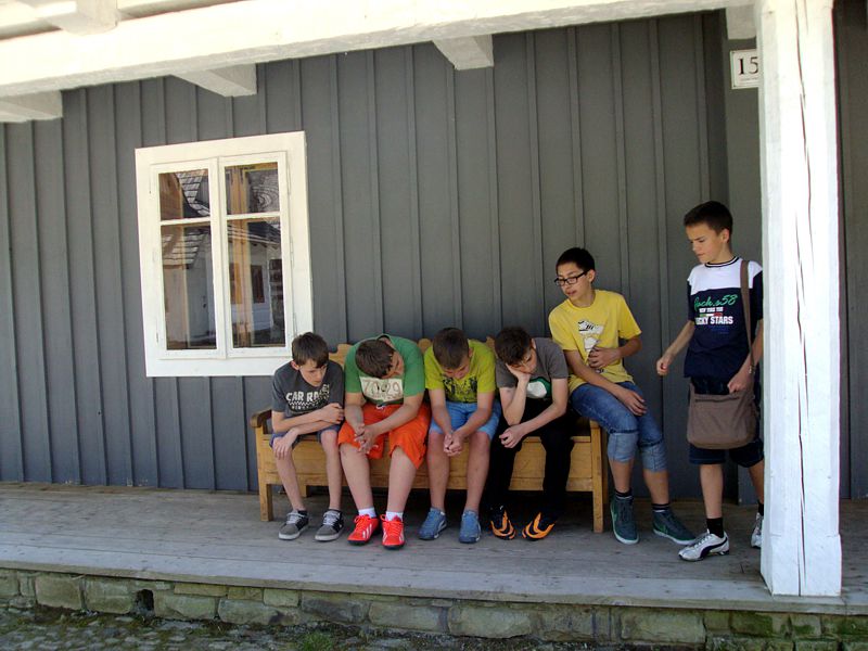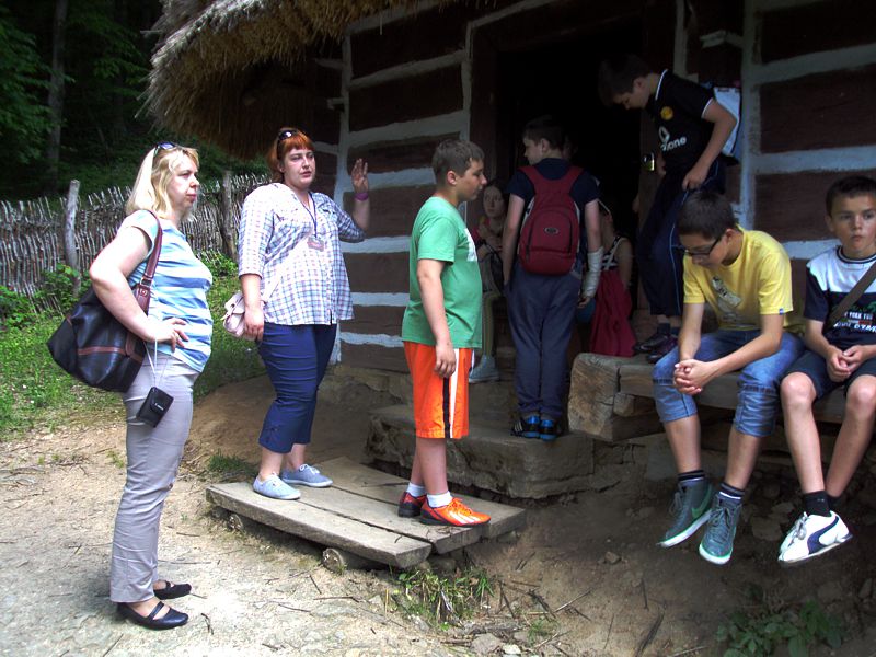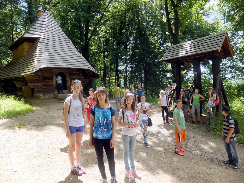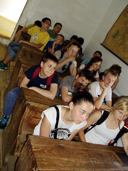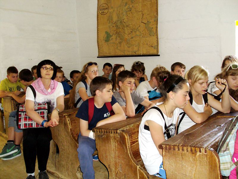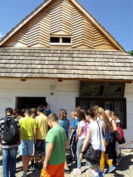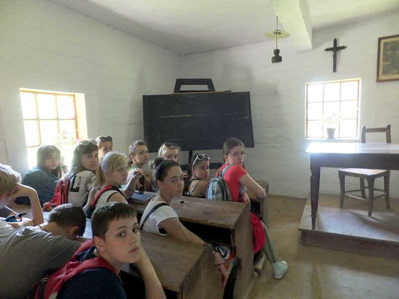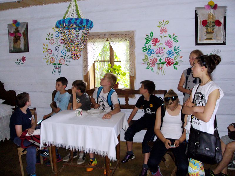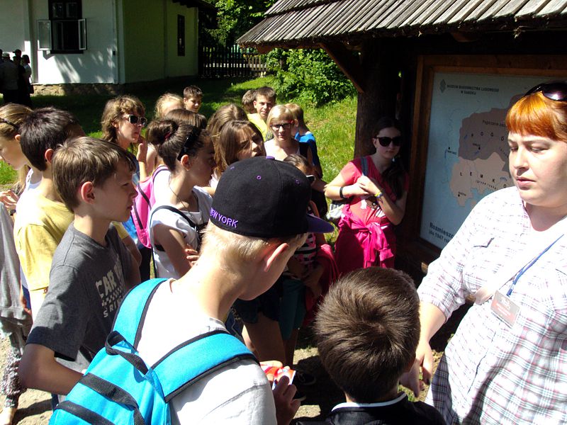 Ostatni dzień stał pod znakiem Sanoka i Krasiczyna. W tej pierwszej miejscowości znajduje się niezwykle okazały, największy w Polsce skansen. Wraz z przewodnikami udaliśmy się na spacer, który trwał dwie godziny. Podczas niego mieliśmy wrażenie, że cofnęliśmy się w czasie. Ujrzeliśmy m. in. wiatraki, młyn, wiejskie chałupy , szlacheckie dworki, zabytkową cerkiew , plebanię, galicyjską szkółkę, urządzenia do wydobywania ropy naftowej. Wraz z przewodnikiem byliśmy także w muzeum ikon, w pracowni zegarmistrza, a nawet w zakładzie fryzjerskim. Po zwiedzeniu skansenu udaliśmy się do Krasiczyna, do zamku Sapiehów. Przewodnik, z którym spotkaliśmy się na dziedzińcu, opowiedział nam w sposób bardzo interesujący o historii zamku, losach jego właścicieli. Oprowadził nas po komnatach, a także podziemiach, w których trzymano złoczyńców i osoby posądzane o konszachty z diabłem. Po wysłuchaniu legend udaliśmy się do izby czeladnej, by przed powrotną drogą posilić się obiadem- schabowym z frytkami i surówką.