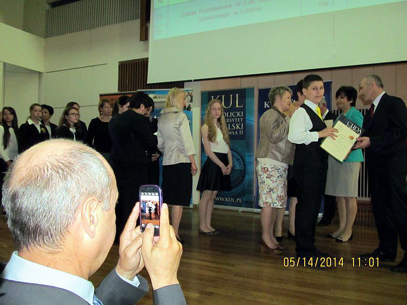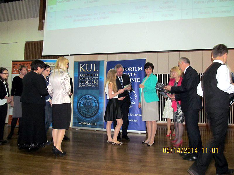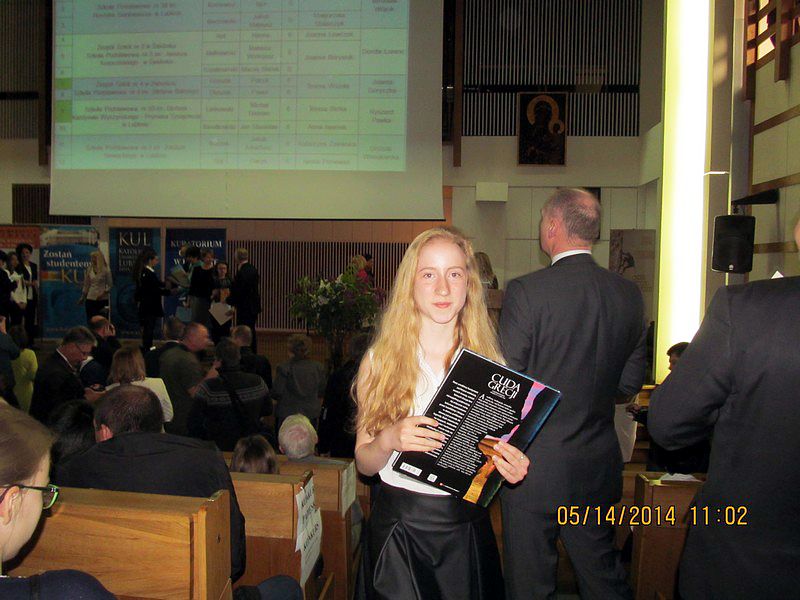 Magdalena Dąbrowska ucz. kl. VI Zespołu Szkół Miejskich nr 3 w Hrubieszowie, 14 maja br. pojechała do Lublina na podsumowanie konkursów przedmiotowych organizowanych przez Lubelskiego Kuratora Oświaty. W tym roku odbyło się ono w auli Katolickiego Uniwersytetu Lubelskiego. Magda została laureatką konkursu polonistycznego. Tym większy to dla niej sukces, bo jako jedyna z powiatu hrubieszowskiego uczestniczyła w zmaganiach wojewódzkich tego konkursu.