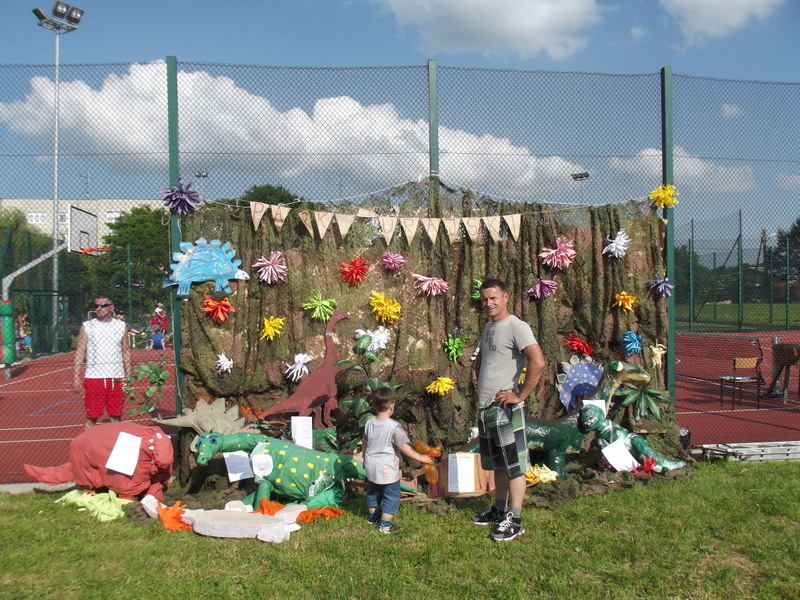 Dzieciom podobał się kącik kosmetyczny, oblegany przez cały czas trwania festynu, w którym można było pomalować swoją buzię w różne ciekawe wzory, kącik zdjęciowy, w którym dzieci robiły śmieszne zdjęcia w egzotycznych i bajkowych sceneriach. Ci, których interesuje sztuka, wykonywali wielkiego dinozaura, który znalazł swoje miejsce w Parku Jurajskim obok orlika, a młodsze dzieci malowały płaskorzeźby różnych gatunków dinozaurów. Nikt się nie nudził. Chętni próbowali z długich balonów stworzyć kształty różnych zwierząt. W czasie festynu jego uczestnicy mogli też wziąć udział w loterii fantowej. Odbyły się również różnorodne konkursy nagradzane drobnymi upominkami.