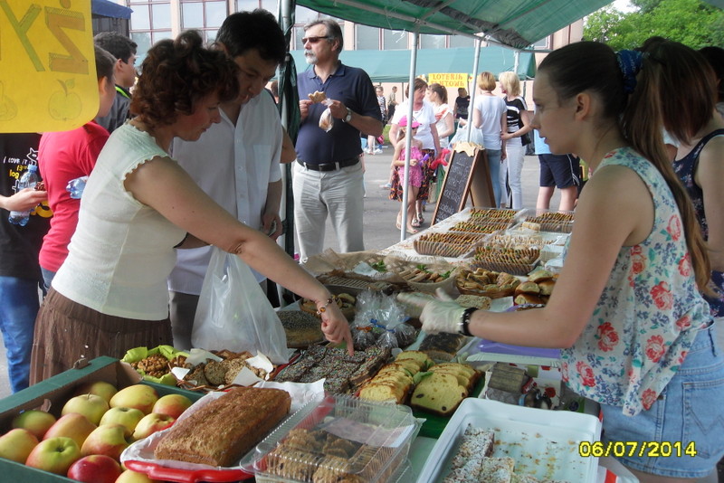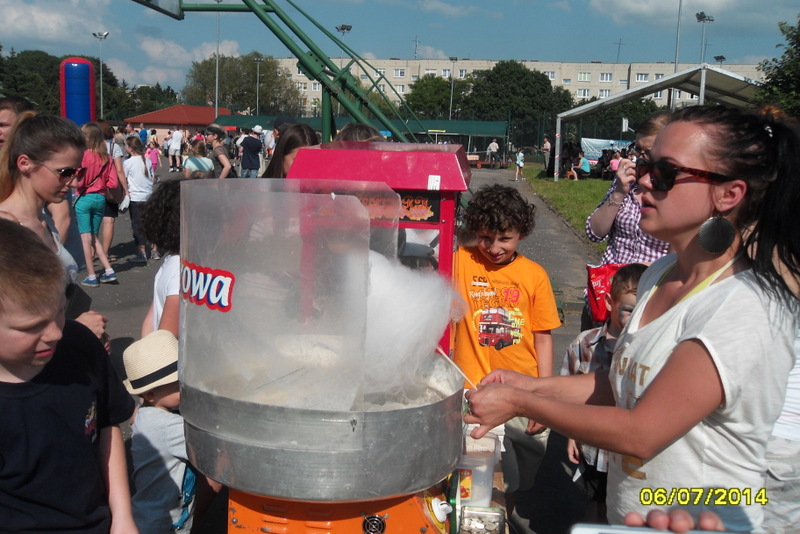 Oprócz atrakcji artystycznych przygotowanych przez naszych uczniów można było odpocząć przy kawie i zjeść przepyszne ciasteczka z logo naszej placówki i zakosztować zdrowej żywnością lub zjeść coś konkretnego – kiełbaskę z grilla. Najmłodsi goście chętnie kupowali watę cukrową, popcorn i lody.