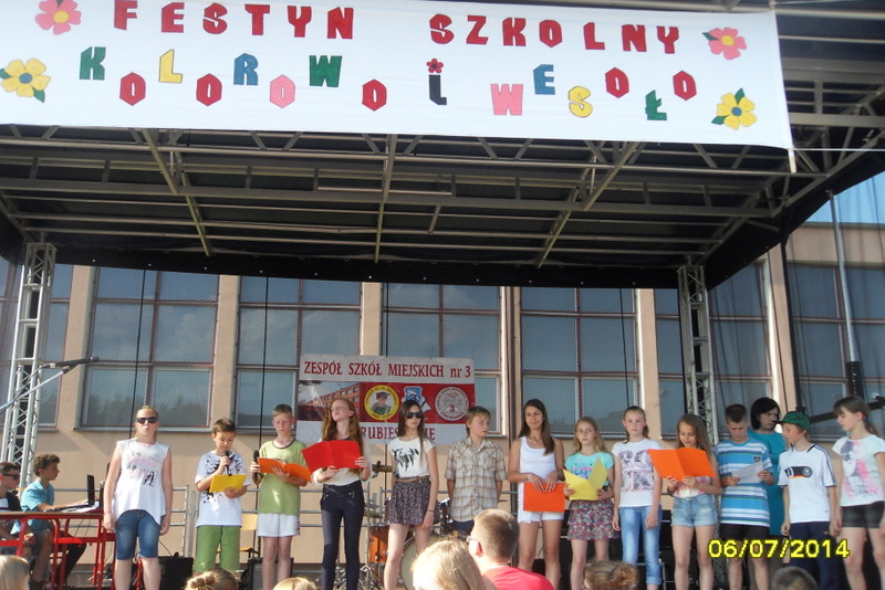 W sobotę, 07 czerwca 2014 r. w godz. 14.00 -18.00, na boiskach naszej szkoły odbył się Festyn Szkolny pod hasłem „Kolorowo i wesoło”. Tego dnia cała społeczność szkolna przygotowała dla wszystkich gości szereg atrakcji, a w nich dużo zabawy, sportu, rekreacji a także muzyki. Celem imprezy było nie tylko zintegrowanie rodziców, dzieci, młodzież i włączenie wszystkich uczestników do wspólnej zabawy. Festyn miał również charakter charytatywny. Zebrane fundusze podczas imprezy, w kwocie 2700 złotych, zostały przeznaczone na leczenie Mikołaja.