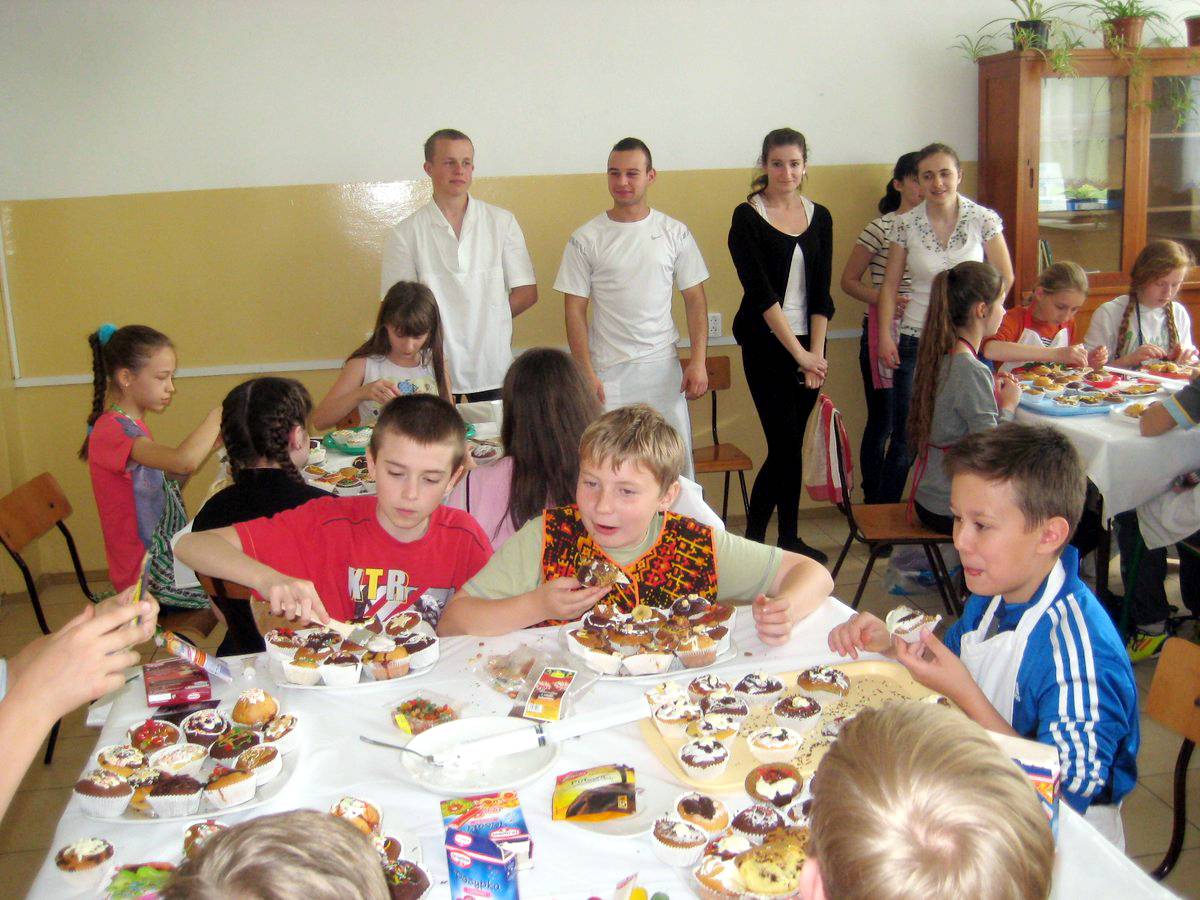 13 maja 2014 r. klasa Va wraz z wychowawcą została zaproszona przez p. Annę Wiśniewską do Zespołu Szkół nr 1 w Hrubieszowie. Starsi koledzy i koleżanki z tej szkoły pomogli naszym uczniom upiec muffinki. A potem rozpoczęła się wspaniała zabawa w dekorowanie tych ciasteczek. Każda muffinka była inna, jedna piękniejsza od drugiej. A jak smakowały!!! Dzięki uprzejmości nauczycieli i uczniów ZS nr 1 każdy uczeń Va wrócił do domu z tuzinem przepysznych ciasteczek. Dziękujemy.