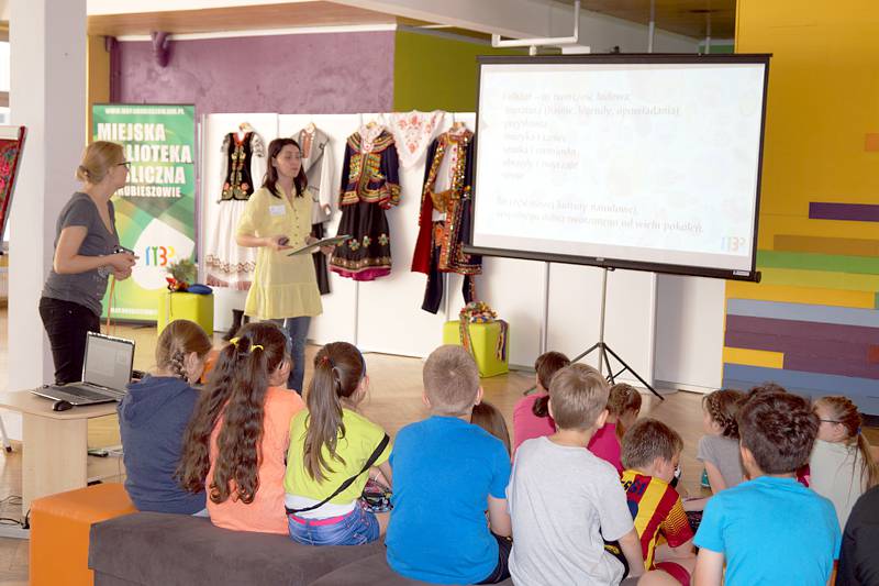 Miejska Biblioteka Publiczna w Hrubieszowie w ramach obchodów Roku Kolberga zorganizowała zajęcia dotyczące folkloru. W spotkaniu tym udział wzięła klasa III c (wych. Iwona Rubacha). Uczestnicy spotkania oglądali stroje ludowe, elementy dekoracyjne pomieszczeń domowych i słuchali ciekawostek dotyczących przeszłości naszego regionu. Największą niespodzianką okazał się teatrzyk, w którym „zagrały” kukiełki wykonane z drewnianych łyżek.