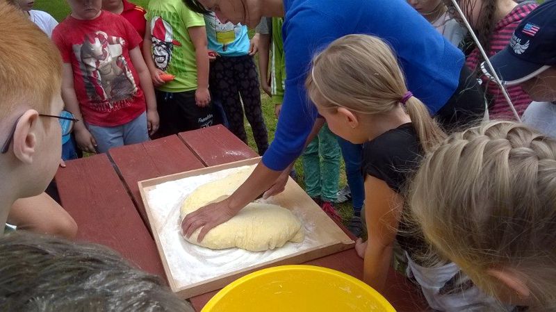 Żegnając rok szkolny 2014/2015 klasy II a, II b oraz III a z wychowawczyniami p. Agnieszką Handziuk, p. Dorotą Wawrzyniuk oraz p. Moniką Będzińską wyruszyły na spotkanie z Mleczną przygodą na Kolorowym Ranczu w Łabuniach. Dzieci mogły sprawdzić: jak wygląda, pachnie i smakuje świeże mleko krowie oraz kozie, skąd się bierze śmietana, jak się robi masło, ser biały, jak się robi bułkę drożdżową i podpłomyki.