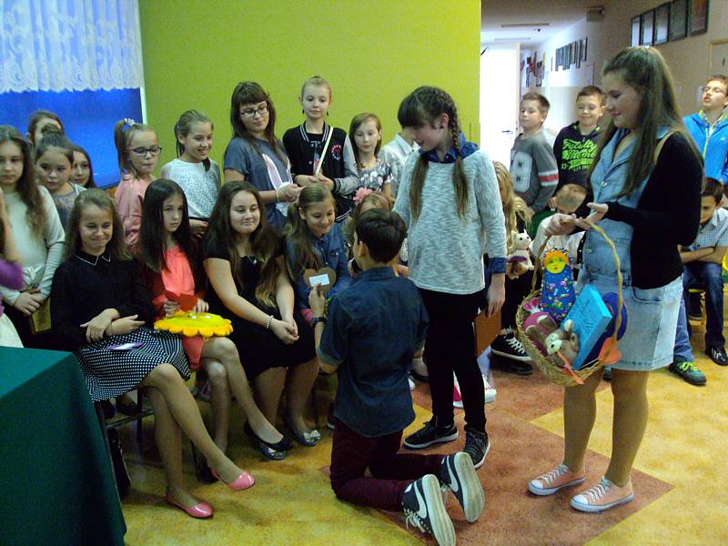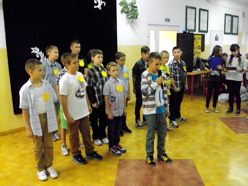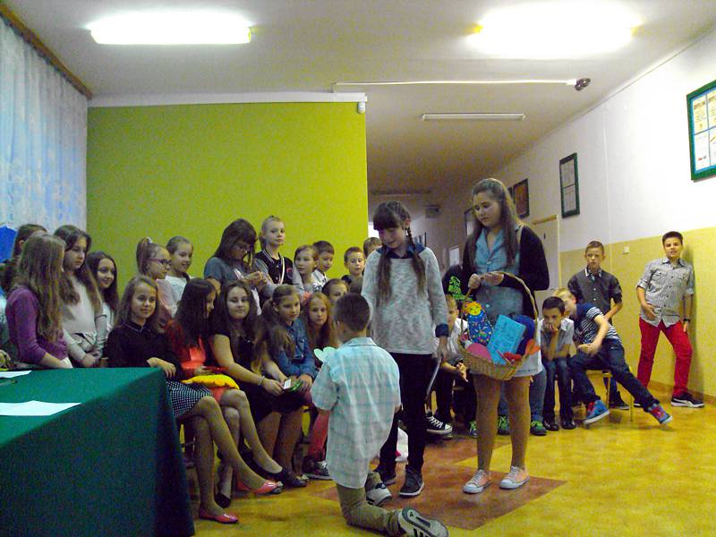 Konkurs wymagał od chłopców wykazania się kreatywnością, zdolnościami sportowymi, tanecznymi i aktorskimi. Na szczęście wszyscy nasi uczniowie mieli te umiejętności, dzięki którym, już później, niejedno dziewczęce serce mocniej zabiło. Po prezentacjach przyszedł czas na werdykt. Jury postanowiło przyznać tytuł Najsympatyczniejszego Chłopca - Michałowi Janickiemu z kl. V a . Tuż za nim uplasowali się uczniowie z klasy VI a – Patryk Piasecki i Damian Kuropatwa. Wyróżnienia trafiły do rąk: Jakuba Mazura, Macieja Wosia, Jakuba Pierwoły, Jakuba Łaby i Igora Krawczyńskiego. Pozostali uczestnicy zabawy również zostali uhonorowani, o czym świadczyły pamiątkowe dyplomy wręczone przez Panią Dyrektor Marzannę Bednarczuk. Po wyborach przyszedł czas na zabawę. Dyskotekowe rytmy sprawiły, że uczniowie mogli choć na parę godzin zapomnieć o szkolnych obowiązkach i pokazać , że potrafią się wspaniale bawić nie tylko w gronie kolegów i koleżanek ze swoich klas. Dzień Chłopca został zorganizowany z inicjatywy Samorządu Uczniowskiego, we współpracy z Dyrekcją i Nauczycielami z naszej szkoły. Wszystkim, którzy sprawili, że w tym dniu uśmiech nie schodził z twarzy dzieci, należą się gorące podziękowania.