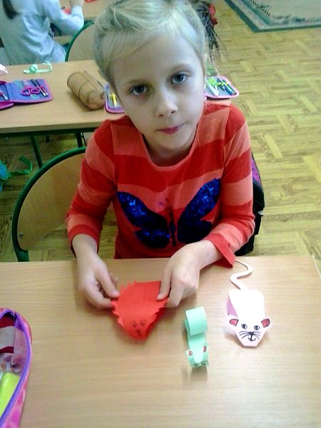 Nauka w klasie pierwszej daje wiele okazji do poznawania ciekawostek przyrodniczych i do organizowania zabaw, których bohaterami są zwierzęta. W „Zwierzaczkowie” - miejscu stworzonym przez uczniów klasy I c przyjemnie było tworzyć papierowe jeżyki z harmonijki oraz afrykańskie zwierzęta z dziecięcych dłoni. Innym razem wystarczyło tylko pokolorować i odpowiednio złożyć papierozwierzaki, by zaraz potem „ożyły” i uczestniczyły w improwizacji ruchowej.