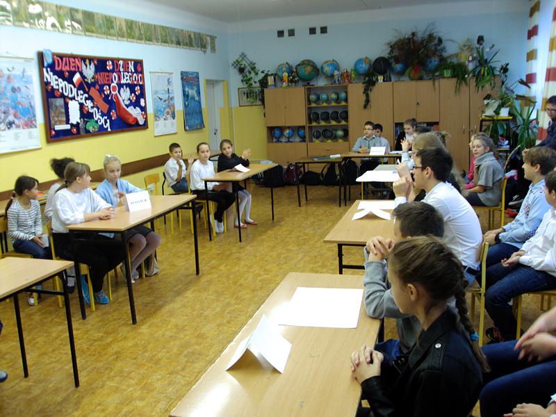 20 listopada odbył się w naszej szkole konkurs "Moja Mała Ojczyzna" zorganizowany przez Samorząd Uczniowski. W konkursie wzięli udział uczniowie klas IV-VI. Poszczególne konkurencje łączyły w sobie elementy wiedzy krajoznawczej na temat regionu oraz znajomość jego historii. Uczestnicy mieli za zadanie zaprezentowanie jury plakatu promującego piękno miasta, wykazanie się wiedzą dotyczącą zabytków Hrubieszowa, mieli też umiejscowić wylosowane obiekty na mapie. Przedstawicieli klas wspierali ich koledzy i koleżanki – kibice. Wszyscy uczestnicy wykazali się bardzo dobrą znajomością swojej małej ojczyzny.