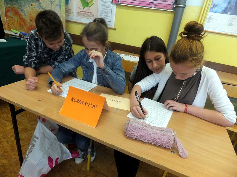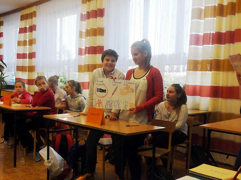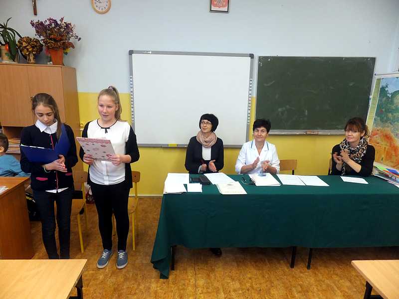 Oprócz tego musieli zaprezentować przygotowany wcześniej plakat, który miał mieć wymiar profilaktyczny. Zmaganiom młodzieży przyglądało się jury w składzie: p. Maria Kapyś, p. Justyna Marcych, p. Alicja Dudas i p. Ewa Sitnik – Pogwizd. Po podliczeniu punktów okazało się , że konieczna jest dogrywka. Po zaciętej walce o punkty ogłoszono wyniki.