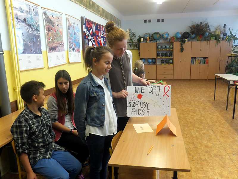 W związku z obchodami „Światowego Dnia AIDS” Zespół Szkół Miejskich nr 3 po raz kolejny włączył się w akcję solidarności z ludźmi chorymi na AIDS. 2 grudnia 2014 r. Samorząd Uczniowski wraz z pielęgniarką szkolną p. Marią Kapyś zorganizował w naszej szkole konkurs ,,Co wiesz o AIDS ?”.Miał on charakter profilaktyczny. Uczniowie z klas piątych i szóstych musieli rozwiązać trudny test wiedzy o zespole nabytego upośledzenia odporności wywołanego przez wirus HIV, odpowiedzieć ustnie na pytania dotyczące choroby, na którą, niestety, jak do tej pory nie znaleziono skutecznego lekarstwa.