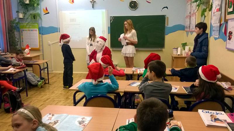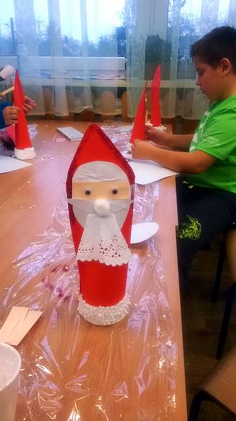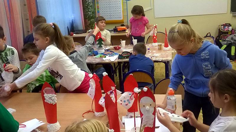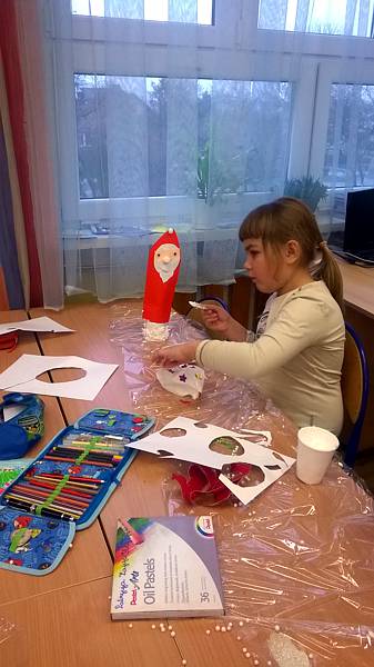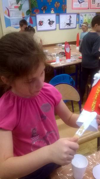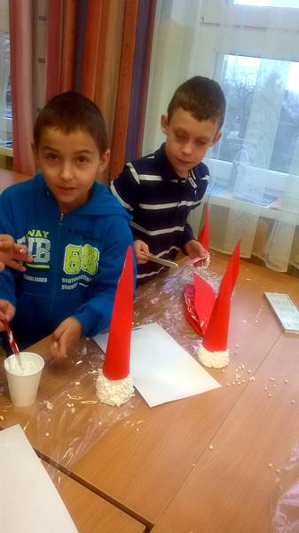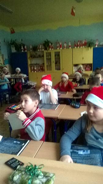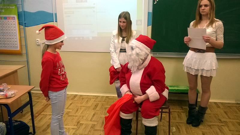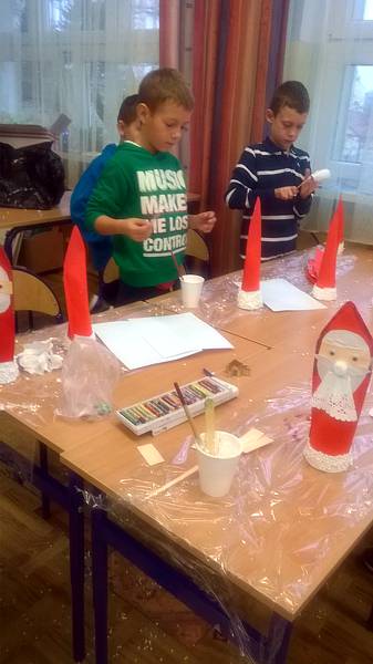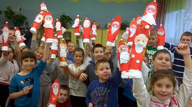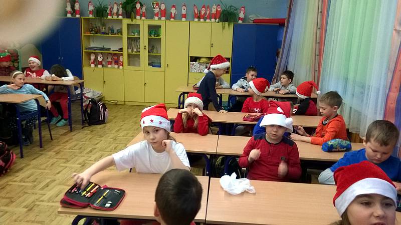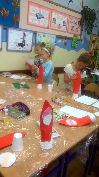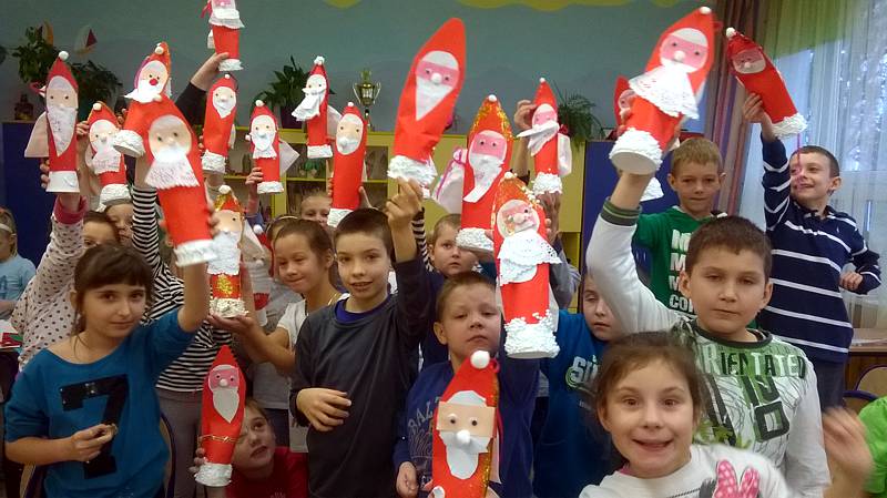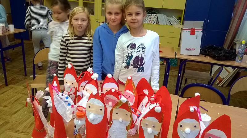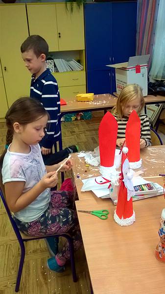 Święty Mikołaj to doskonale znana dzieciom z klasy II a postać - starszy pan z długą brodą, laską w towarzystwie reniferów i dużym workiem prezentów. Dlatego dzieci postanowiły nie tylko czekać na zacnego gościa z prezentami ale przypomniały, że nadchodzą święta w trakcie warsztatów plastycznych. Powstały przecudne Mikołaje oprószone śniegiem i iskrzące brokatem. W dniu 8 grudnia odwiedzili nasza klasę goście Mikołaj w asyście Śnieżynek. Wszystkie grzeczne dzieci otrzymały słodkie prezenty.