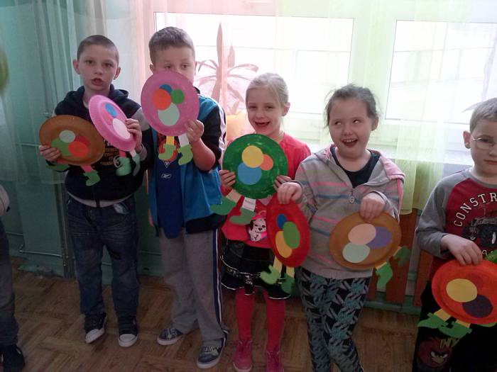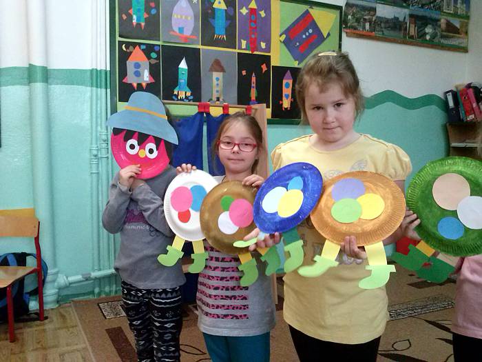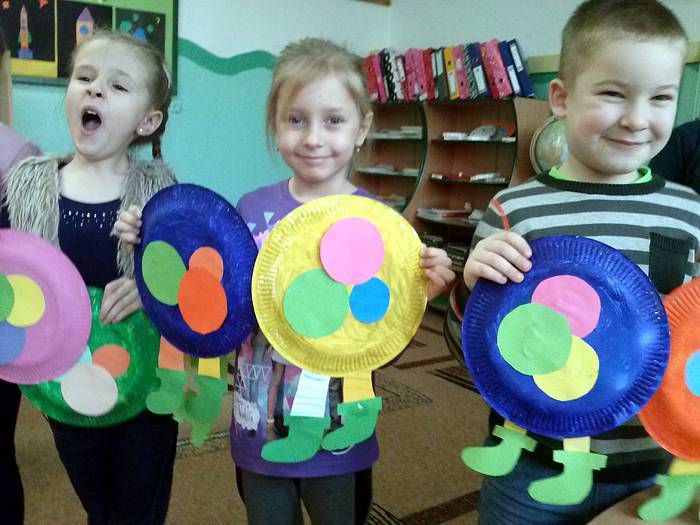 Ponad trzy miesiące uczniowie klasy Ib pracowali nad projektem pt. „Stonoga Klementyna, Lila i Maryla”. Dzieci na dodatkowych zajęciach artystycznych wykonały piękną , kolorową stonogę i nadały jej imię Klementyna. Zgodnie z metodą projektu zaprojektowaliśmy kolory i wzór skarpetek, bucików, brzuszki wykonane z talerzy papierowych ozdobiliśmy też w wybrany sposób. Najwięcej problemu było z głową stonogi, jej kapeluszem, czułkami kolorem i kształtem oczu. Doszliśmy do wniosku, że stworzymy też Lilę i Marylę jej młodsze koleżanki.