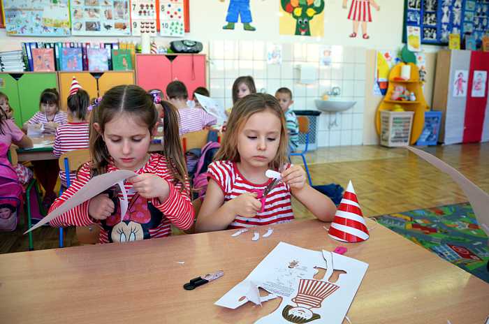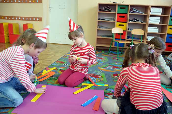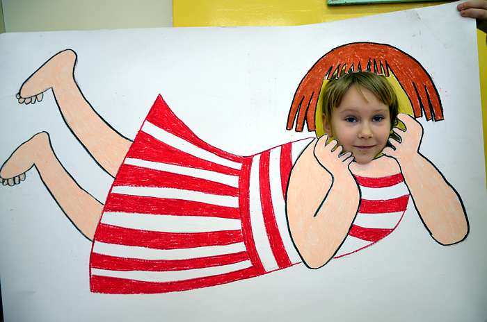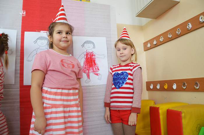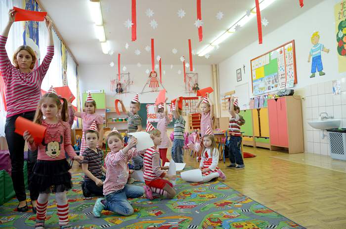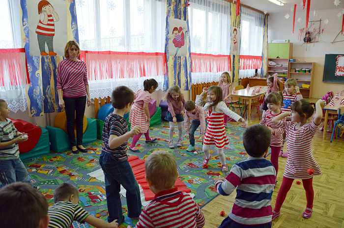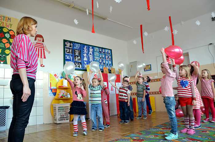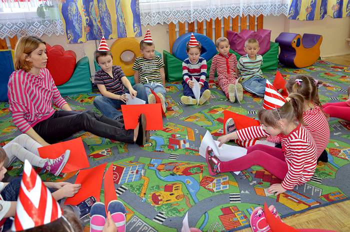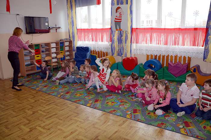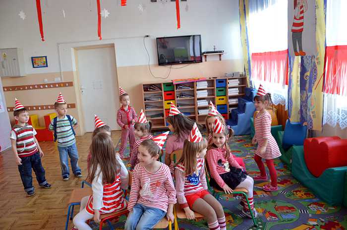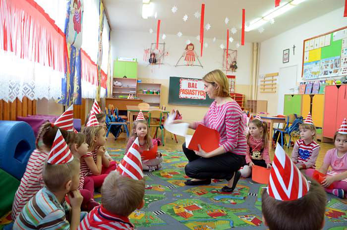 "Basiowy Dzień Pasiastych" był dobrym pomysłem na to, by choć na chwilę przenieść się w świat bohaterki opowiadań. W przygotowaniach do imprezy uczestniczyły wszystkie dzieci z zerówki. W pasiastych strojach rozpoczęliśmy fajną i kolorową zabawę. Były tańce z paskami bibuły i balonami, tworzyliśmy pasiaste obrazy, z zamkniętymi oczami kolorowaliśmy strój Basi. Wiele radości wyzwoliło się podczas bitwy na papierowe kule biło - czerwone.