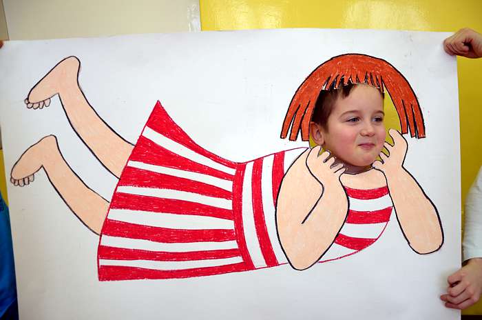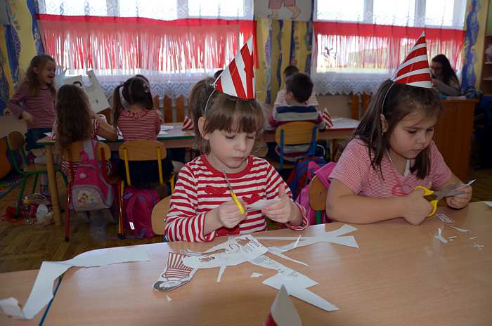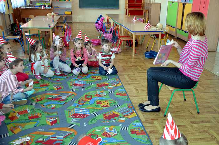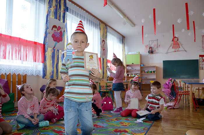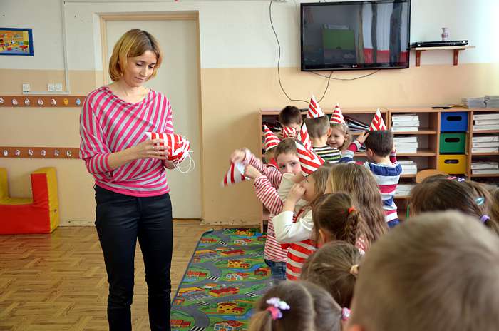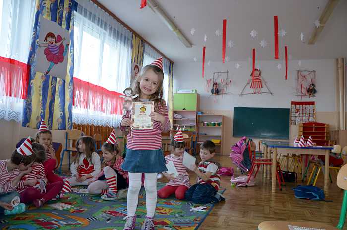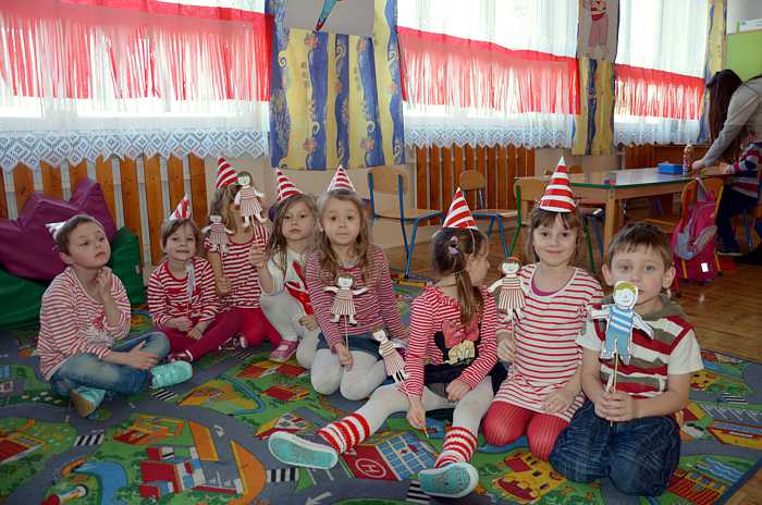 05. 03. 2015 r w klasie 0 a był bardzo kolorowy i radosny, a to za sprawą "Basiowego Dnia Pasiastych". Impreza została zainspirowana serią opowiadań "Basia i ..." napisanych przez Zofię Stanecką. Główna bohaterka Basia ma 5 lat, dwóch braci i jest bardzo żywiołową dziewczynką, która ciągle zadaje pytania, miewa różne humorki i upodobania np. uwielbia pasiaste, biało - czerwone ubrania . Przygody Basi dzieci poznawały dzięki uważnemu słuchaniu tekstu czytanego przez nauczyciela. Zainteresowanie dziewczynką było ogromne, gdyż miała podobne dylematy i problemy co dzieci, przez to maluchy bardzo szybko utożsamiły się z tą postacią. Każdy pięciolatek chciał osobiście poznać Basię i zaprzyjaźnić się z nią.