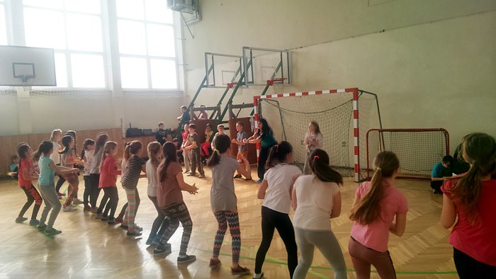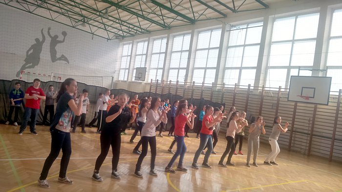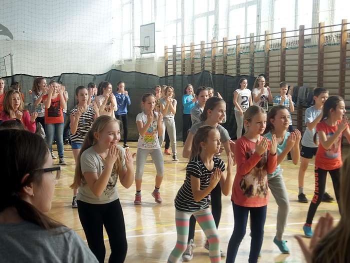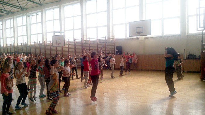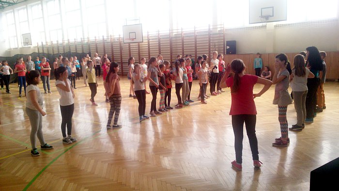 Dnia 18.03.15r. w naszej szkole w ramach akcji "Odwołujemy zimę!" został zorganizowany kurs tańca. Znudzeni szarugą, poszukujący ciepłych promieni słonecznych zebraliśmy się w sali gimnastycznej i zaprosiliśmy wiosnę. Wraz z nią w szkole pojawiła się pełna pozytywnej energii - Pani Jolanta Głowacz. Instruktorka tańca z HDK w sposób niezwykle otwarty i życzliwy podeszła do młodych tancerzy i zachęciła ich do wzięcia udziału w tanecznym pokazie.