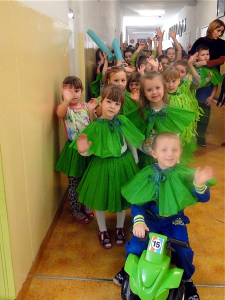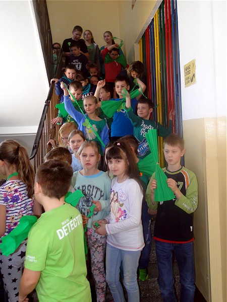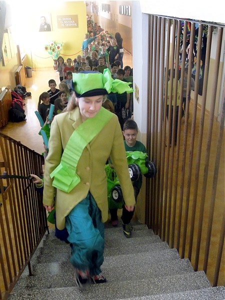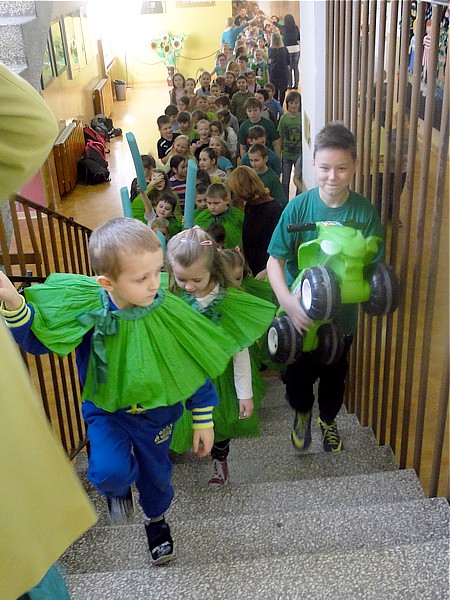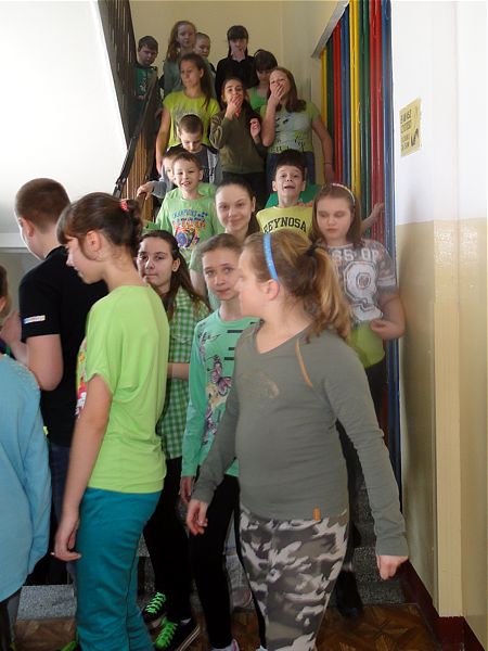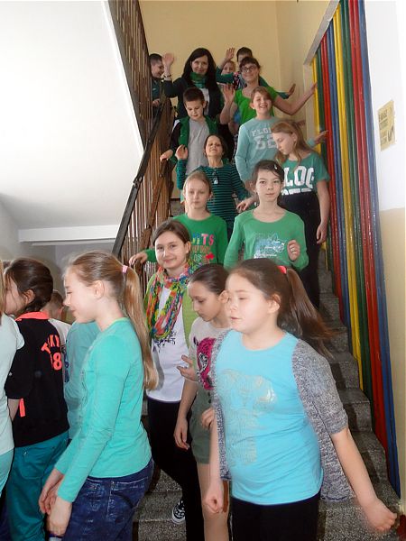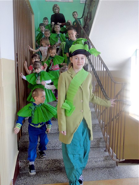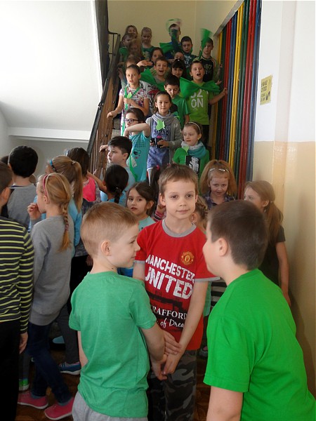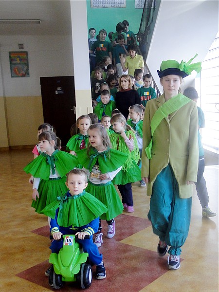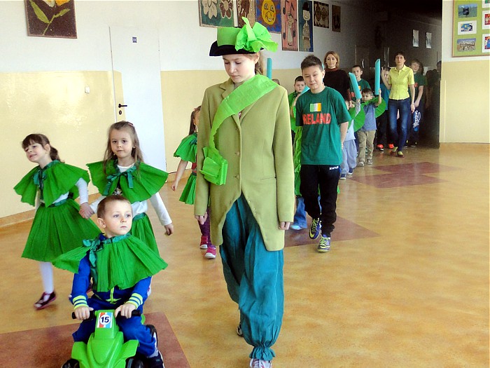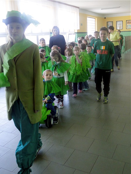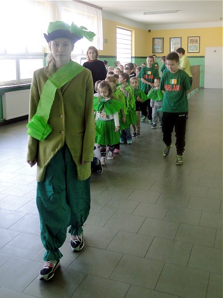 Następnie wyruszyliśmy na paradę po korytarzach naszej szkoły w rytmie irlandzkiej muzyki. Paradę rozpoczęła klasa O a zakończyła klasa VI.