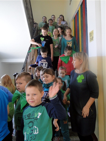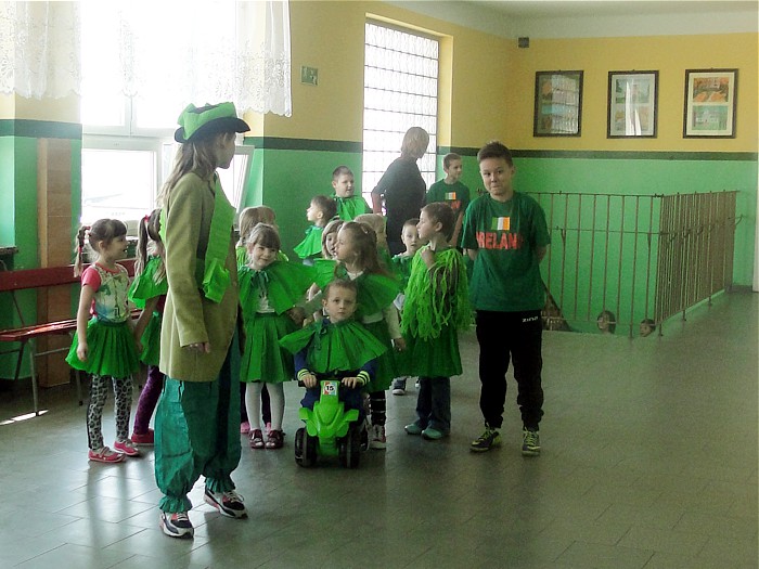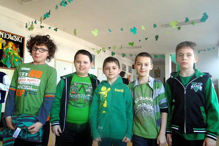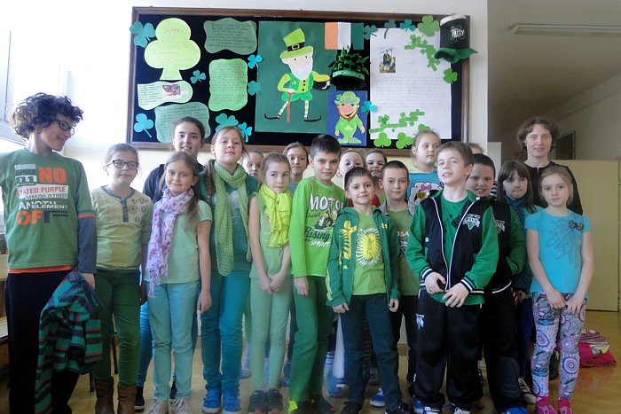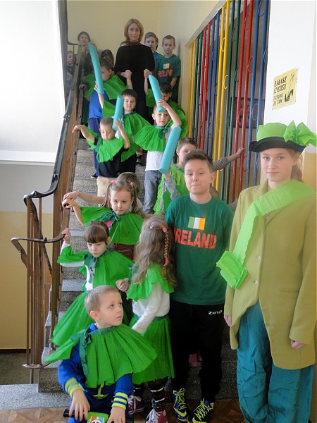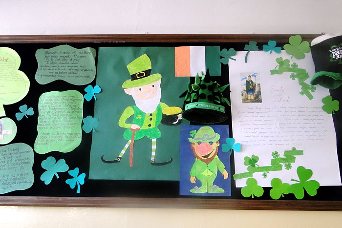 W dniu 17 marca 2015 r. obchodziliśmy w naszej szkole Dzień Świętego Patryka. W tym dniu uczniowie przyszli do szkoły ubrani na zielono. Nauczyciele również byli ubrani na zielono lub mieli przypięte zielone koniczynki. Przed obchodami tego dnia w naszej szkole na lekcjach języka angielskiego odbyły się pogadanki na temat obchodów tego święta w Irlandii i na świecie oraz o historii Świętego Patryka i Irlandii.