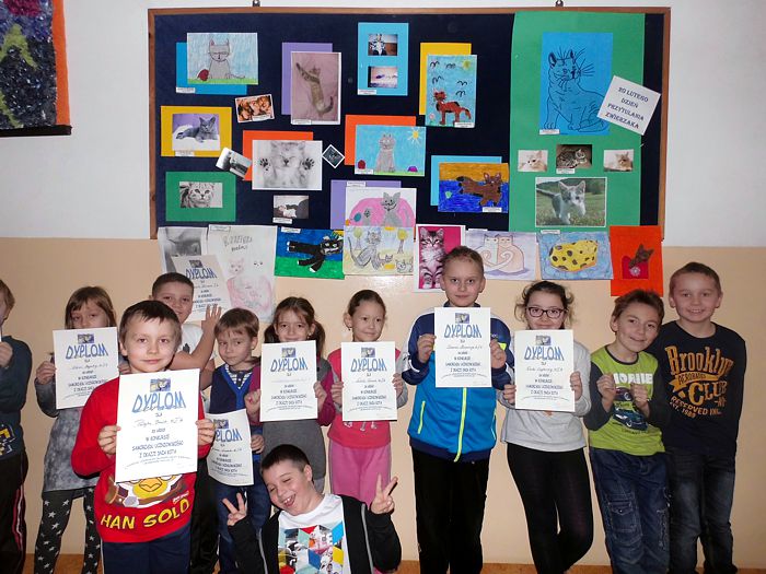 Z okazji Dnia Kota Samorząd Uczniowski zorganizował konkurs młodszej grupy wiekowej dla klas I-III zorganizował konkurs na zdjęcie lub rysunek swojego pupila. Prace milusińskich zdobią szkolną gazetkę Najlepsze prace zostały nagrodzone dyplomami. Gratulujemy!