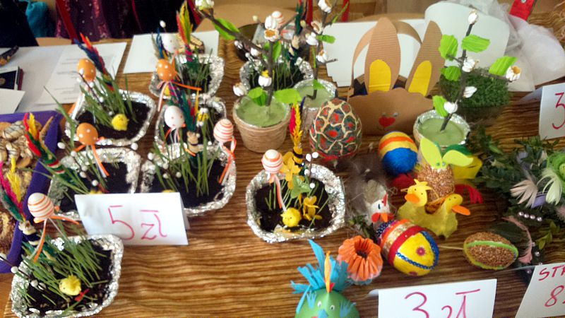 W piątek 27 marca 2015 r. w naszej szkole odbył się Kiermasz Wielkanocny. Już na pierwszej przerwie śródlekcyjnej wszyscy chętni mogli nabyć wielkanocne ozdoby, wykonane przez uczniów z klas I – VI. Na kolorowym stole można było znaleźć to, z czym kojarzymy nadchodzące święta – stroiki, pisanki, kraszanki, koszyczki i kartki świąteczne. Ponadto podczas kiermaszu można było zakupić słodkości przygotowane przez rodziców. Kiermasz cieszył się dużym zainteresowaniem zarówno wśród dzieci jaki dorosłych.