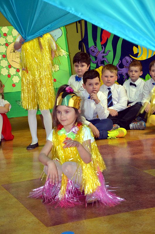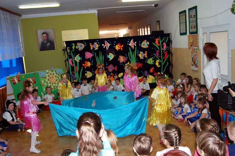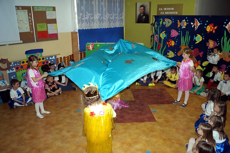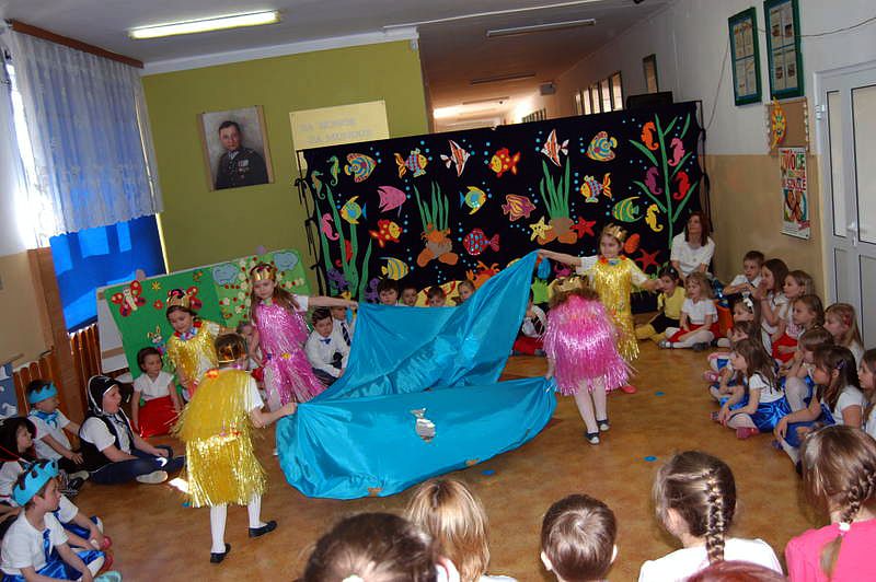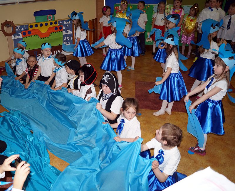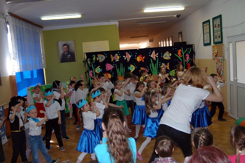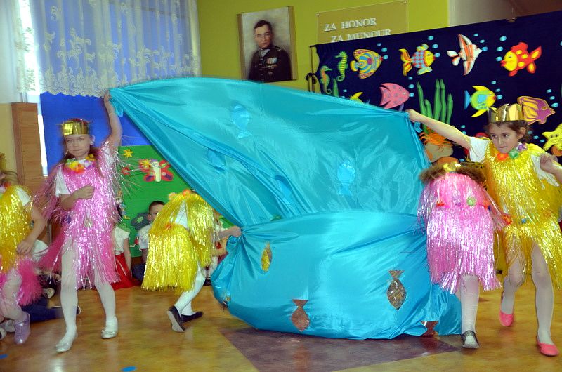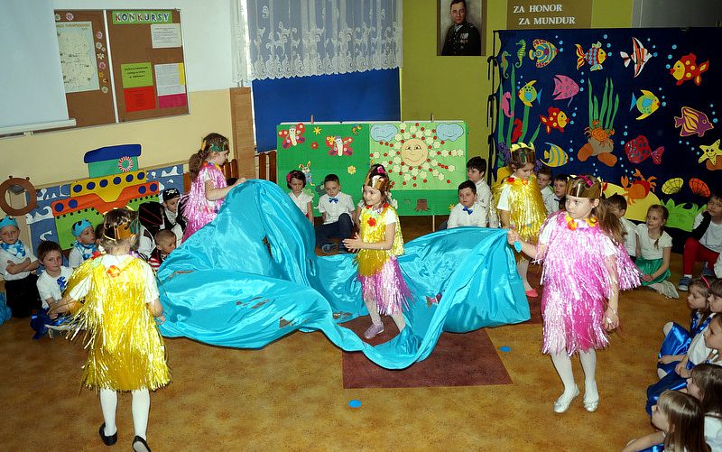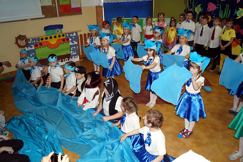 W tańcu zaprezentowali kolorowy świat, wcielając się w złote rybki, delfinki, piratów, a za czwartym razem – w mieszkańców dżungli, którzy niejednokrotnie przemierzają olbrzymie odległości w poszukiwaniu kilku kropli wody. Teatrem żywego planu i zabawą kukiełkami uzmysłowili widzom, że od czystości wód i dostępu do niej zależy życie wielu gatunków zwierząt oraz roślin. Nie zabrakło również momentów zaskakujących samych wykonawców, ponieważ opiekunki przygotowały dla nich multimedialną prezentację dotyczącą ekosystemu wodnego i związane z tym zadanie utworzenia ogromnej planszy Afryki z egzotycznymi zwierzętami – kontynentu najbardziej zagrożonego brakiem lub złą jakością wody. W ten sposób udało się zwrócić uwagę społeczną, że ponad miliard ludzi na świecie cierpi z powodu braku dostępu do wody pitnej.
