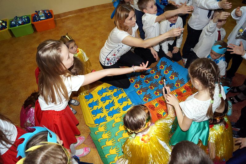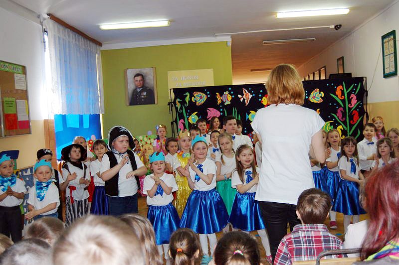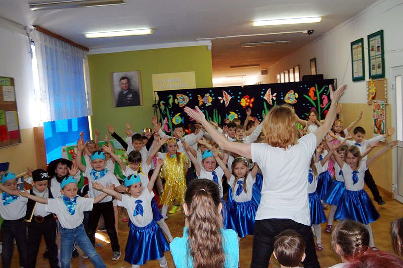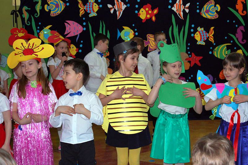 Nauczyciele z Zespołu Szkół Miejskich nr 3 w Hrubieszowie dążą do tego, aby dzieci od najmłodszych lata uczyły się stosować znane sposoby działania do rozwiązywania nowych, nieznanych sobie zadań. A skoro mali uczniowie po raz pierwszy zetknęli się z Światowym Dniem Wody (22 marca) oraz Tygodniem Czystości Wód ( 1-7 kwietnia) obie akcje obchodzili w bardzo prosty i znany im sposób. Sześcio - i siedmiolatkom najłatwiej przekazać cenne informacje śpiewając, tańcząc i improwizując ruchowo. Poprzez takie formy podzielili się wiedzą o bogactwie i różnorodności wód.