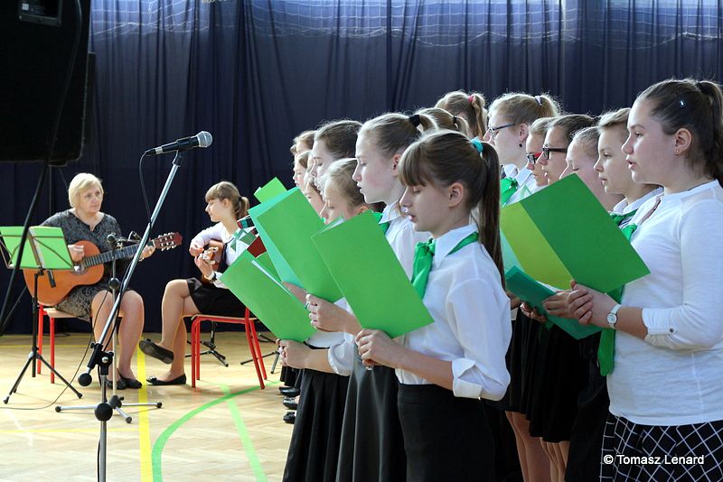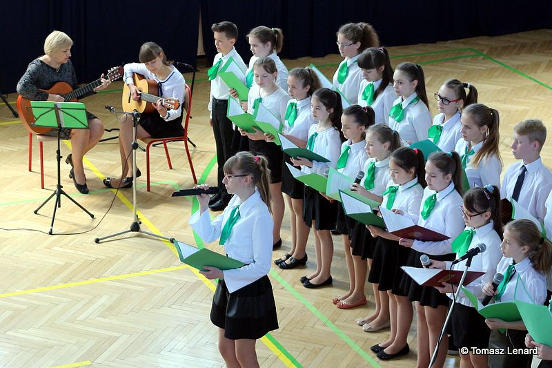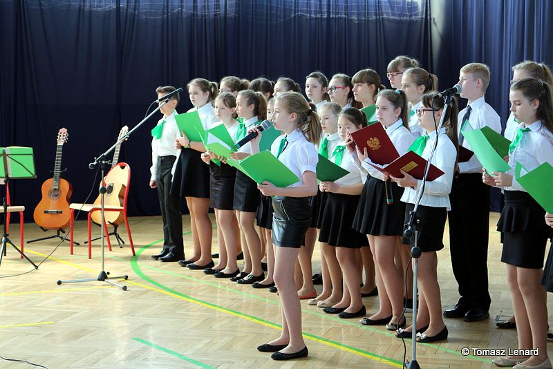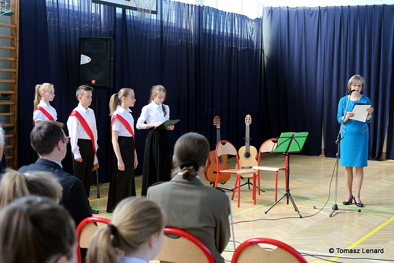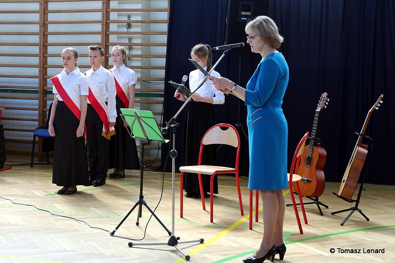Pani dyr. Danuta Krawczuk przywitała wszystkich przybyłych na uroczystość gości, uczniów i nauczycieli. W swojej wypowiedzi podkreśliła takie wartości jak: pielęgnowanie tradycji patriotycznych, wzorów bohaterstwa oraz szacunku wobec historii i tradycji narodowej. „Wspólne śpiewanie hymnu i pieśni patriotycznych ma szczególną moc – powiedziała. Jest źródłem wielu pięknych wzruszeń i radosnych przeżyć wręcz wywołuje poczucie wspólnoty i jedności wśród śpiewających, a także stwarza możliwość okazywania uczuć patriotycznych.”