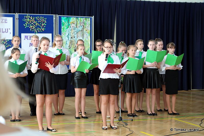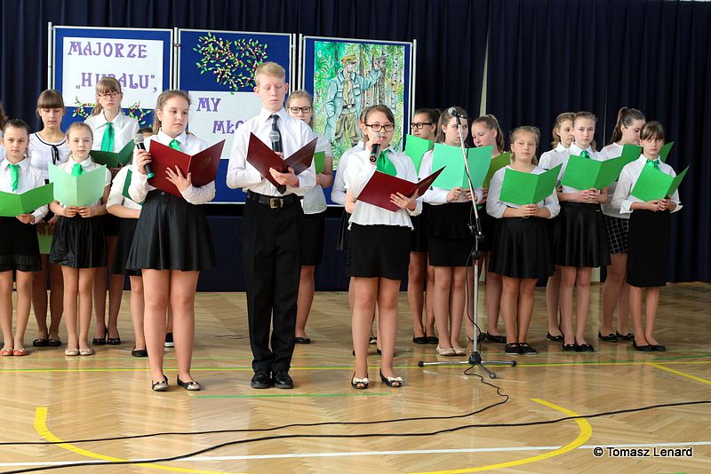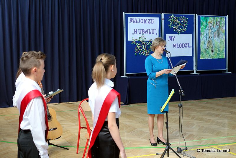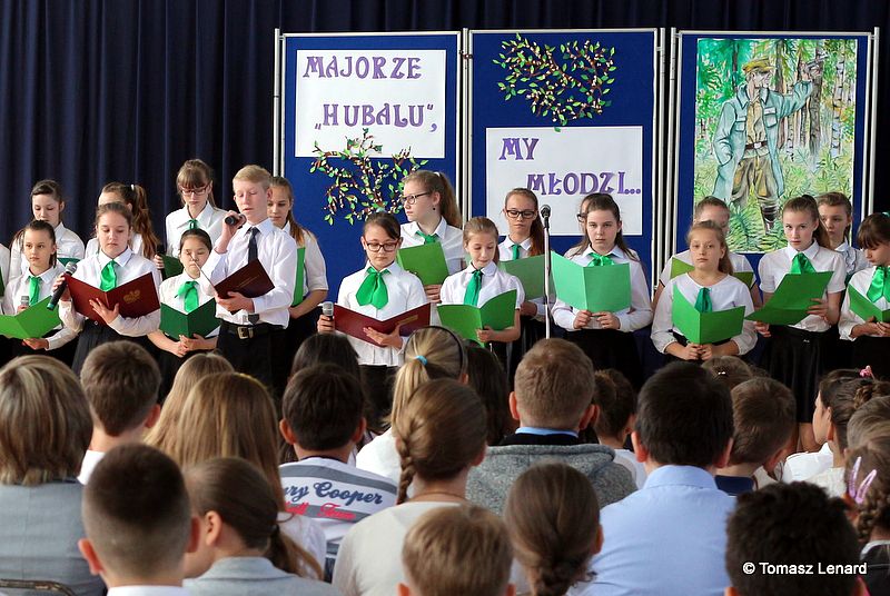 Montaż słowno - muzyczny opracowały: p. Aneta Franke i p. Ewa Sitnik - Pogwizd. Wykonawcami zaś byli członkowie szkolnego chóru oraz uczniowie z klas Va i VI a. Przedstawione teksty o życiu majora „Hubala”, jego oddaniu sprawie Ojczyzny oraz przepięknie wykonane pieśni patriotyczne, w tym również „Hubalowa legendo” tworzyły odpowiedni klimat i nadawały podniosłości uroczystości.