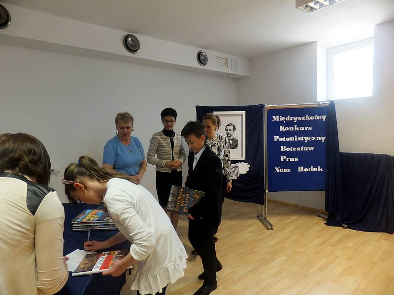 Organizatorzy konkursu pod koniec zmagań podziękowali uczestnikom i ich opiekunom za przybycie, godne reprezentowanie swoich szkół (było ich pięć) i po rozdaniu pamiątkowych dyplomów i nagród książkowych zaprosili na kolejną już edycję konkursu o Bolesławie Prusie.
