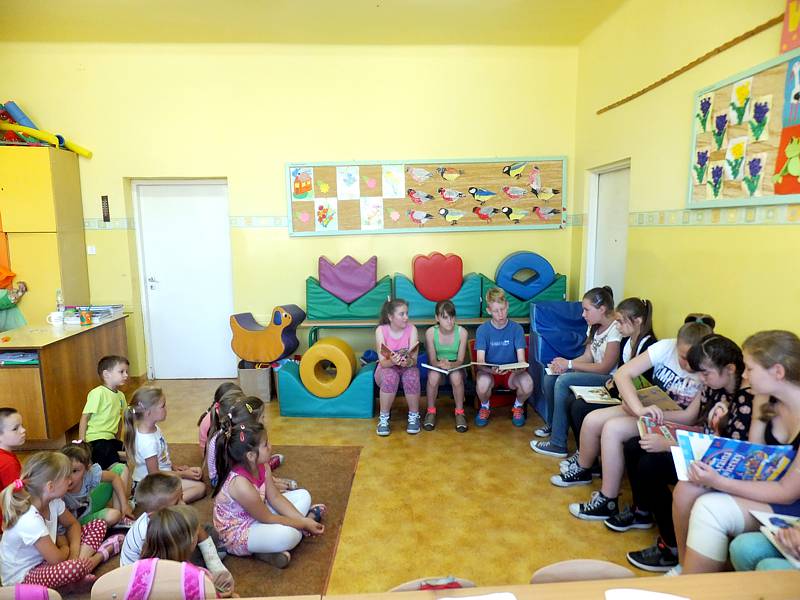 Oczywiście, aby tradycji stało się zadość, pierwszym wierszem, który był odczytany, był ten pt. "Lokomotywa" Juliana Tuwima. Aby dzieci, które są bardzo wymagającymi słuchaczami, poznały przy okazji galerię przeróżnych, literackich bohaterów, uczniowie z SU czytali im utwory m. in. o Samochwale, Kłamczusze, Kogucie, ptaszkach z Ptasiego Radia. Uczniowie z uwagą słuchali swoich starszych kolegów. Pod koniec spotkania nagrodzili ich wszystkich brawami. W nagrodę i na pamiątkę otrzymali od nich naklejki, które z dumą pokazali później swoim rodzicom.