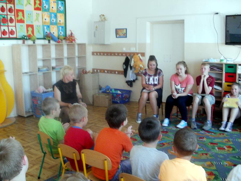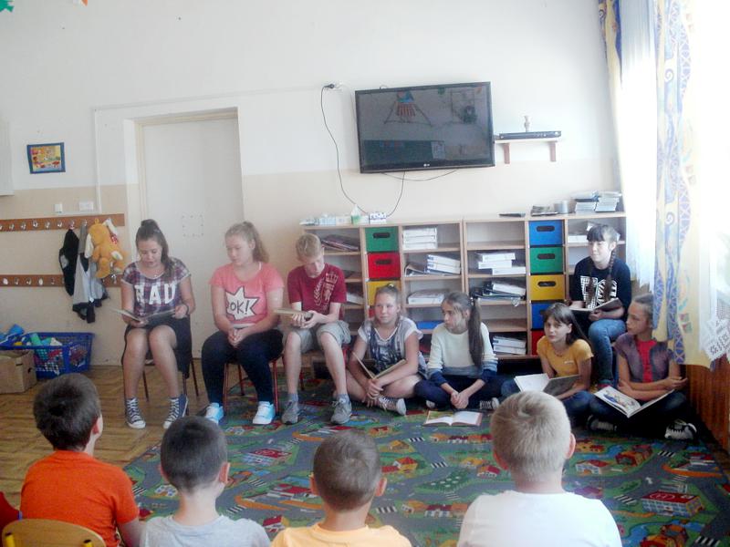 "Cała Polska czyta dzieciom" to kampania społeczna rozpoczęta w 2001r. przez Fundację ABCXXI, mająca na celu propagowanie codziennego czytania jako skutecznej i przyjaznej metody wspomagania wszechstronnego rozwoju najmłodszych oraz budowania ich kompetencji emocjonalnych i intelektualnych. Jak wykazują badania, czytanie przez minimum 20 minut dziennie to najlepsza inwestycja w przyszłość dziecka. Wiedząc o tym, już po raz piętnasty uczniowie z najstarszych klas szkoły podstawowej (w tym roku – członkowie Samorządu Uczniowskiego) udali się dn. 12 i 16.06.15r. z wizytą do uczniów z klas "O". Specjalnie dla nich wybrali najpiękniejsze utwory z literatury dziecięcej.