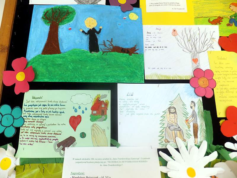 Dnia 16 czerwca 2015r. w czytelni naszej szkoły odbyło się podsumowanie konkursów organizowanych przez Samorząd Uczniowski. Pierwszy miał charakter plastyczny, gdyż uczniowie musieli przygotować piękną ilustrację do wybranego utworu ks. Jana Twardowskiego. Dokonanie przekładu intersemiotycznego wymagało od dzieci sporego wysiłku, również intelektualnego. Aby móc narysować ilustrację , należało wcześniej zaznajomić się z twórczością poety, który przyszedł na świat równo 100 lat temu. To właśnie ze względu na okrągłą rocznicę jego urodzin SU postanowił zorganizować konkurs, którego wymiernym efektem były piękne i wartościowe prace naszych utalentowanych uczniów.