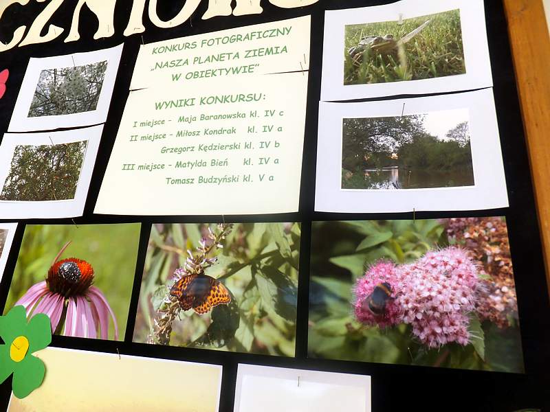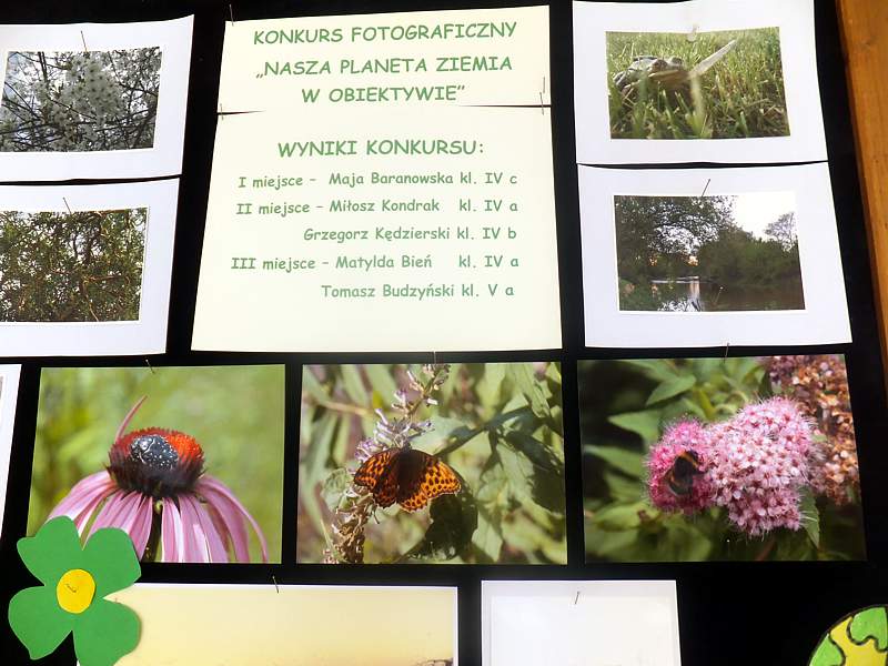 We wtorek odbyło się również podsumowanie Konkursu Fotograficznego,, Nasza planeta Ziemia w obiektywie”. Jego celem było wyłonienie miłośników przyrody, którzy obdarzeni wyjątkową wrażliwością , są w stanie dostrzec piękno naszej Ziemi. Jej wyjątkowość potwierdzają ukazane na zdjęciach okazy fauny i flory. Jak się okazało , żeby wykonać dobrą pracę , wystarczyło rozejrzeć się wokół. Tym , którzy utrwalili na zdjęciach naszą planetę ,