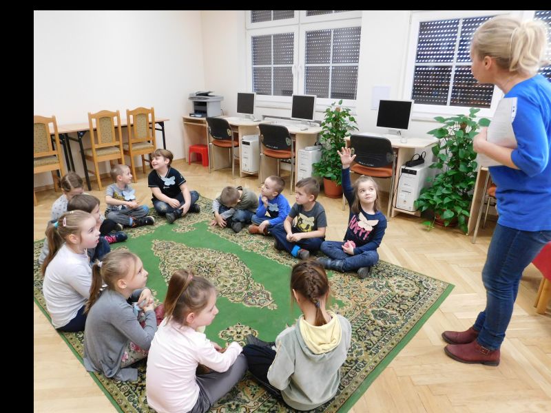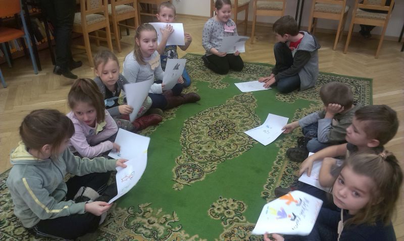 Dnia 03 lutego klasa I d wzięła udział w zajęciach pod hasłem "Złość", które odbyły się w Bibliotece Pedagogicznej. Były one prowadzone przez p. Aleksandrę Kopczyńską i Elżbietę Rafalską. Na początku dzieci usiadły w kręgu i przedstawiły się wymieniając swoją ulubioną potrawę. Następnie Panie zawarły z dziećmi kontrakt informujący o prawidłowym zachowywaniu się.