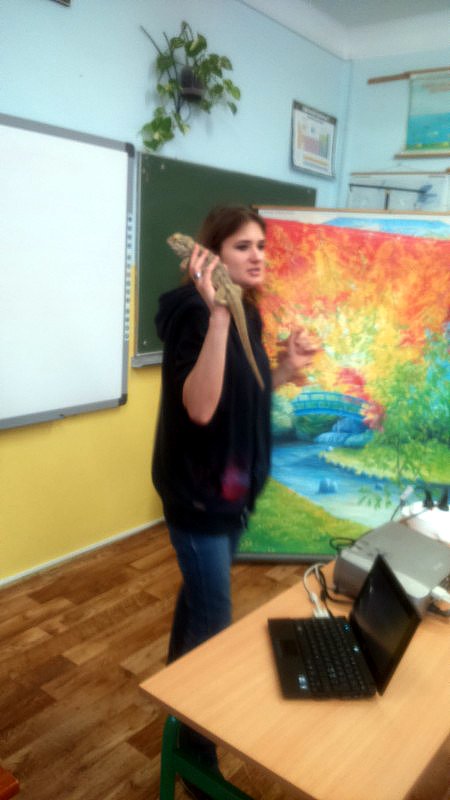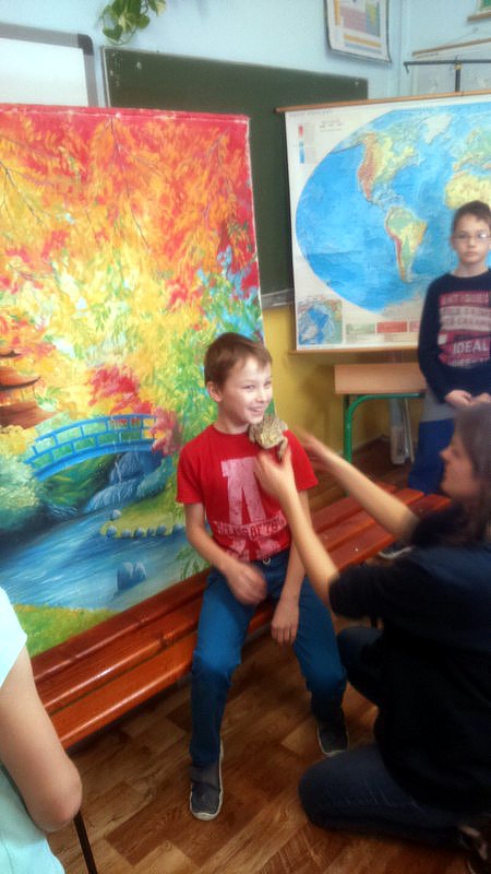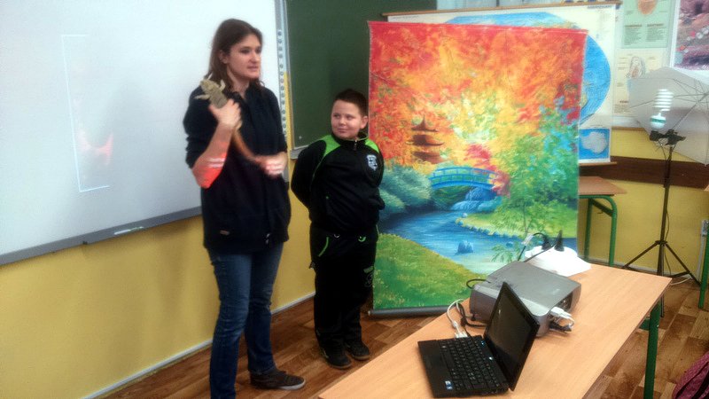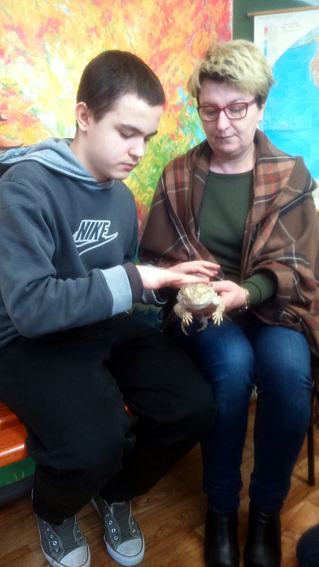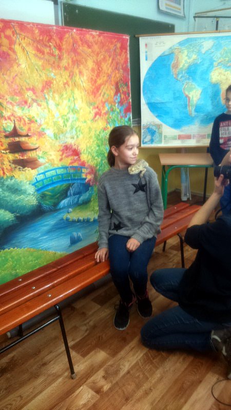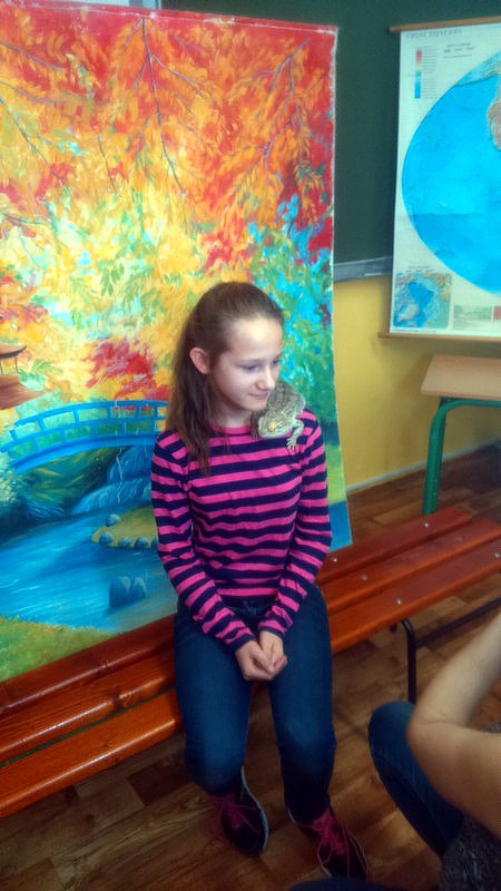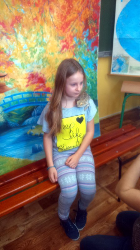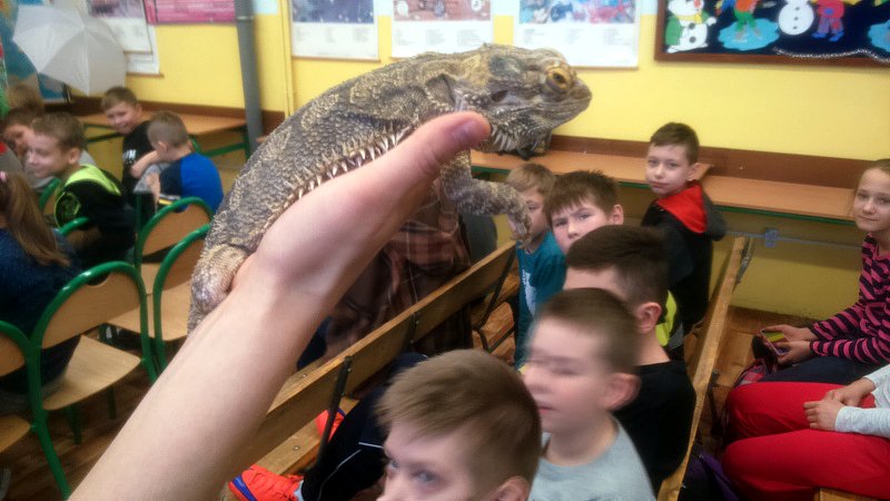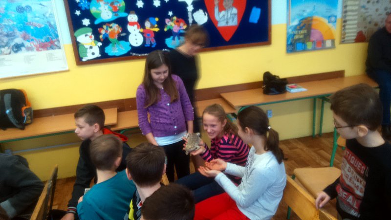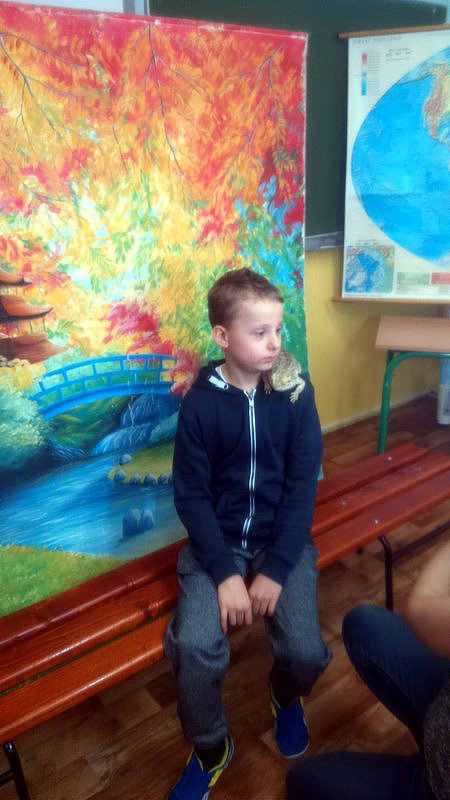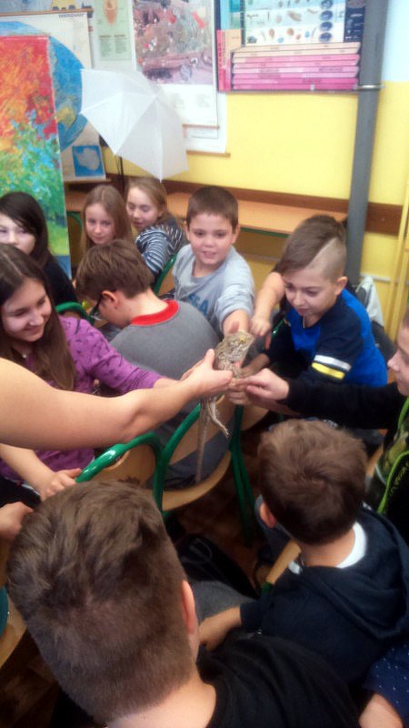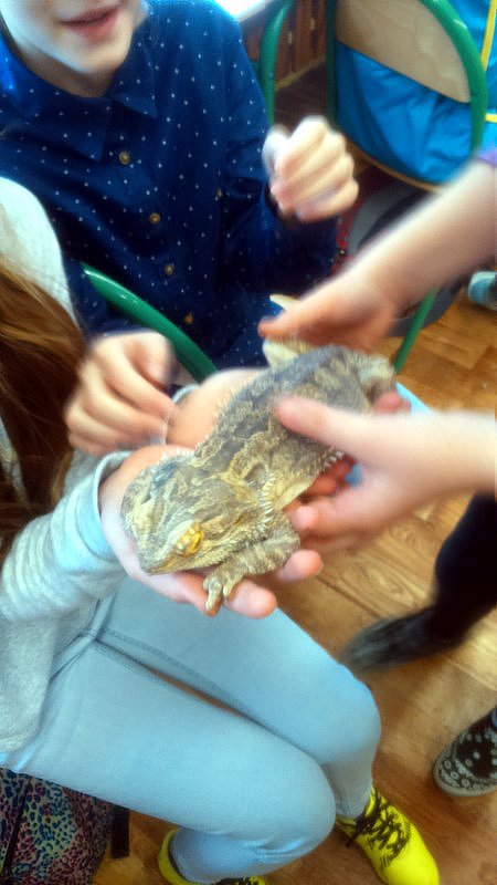 Podczas zajęć mogli poznać zwyczaje egzotycznych zwierząt. Nietypowe spotkanie z przyrodą, okazało się bardzo interesujące. Uczniowie zdobyli cenną wiedzę na temat budowy żywych organizmów, sposobu odżywiania i miejsca ich występowania. Poznali ciekawostki z życia zwierząt i najdziwniejsze cechy charakterystyczne danego gatunku. Dużą atrakcją dla uczniów i najbardziej ekscytującą częścią zajęć było spotkanie „oko w oko” z jaszczurką Agamą Brodatą, którą mogli dotknąć, pogłaskać, zrobić zdjęcie – oczywiście pod okiem ich właściciela. Przysporzyło to dzieciom wiele radości i wrażeń.