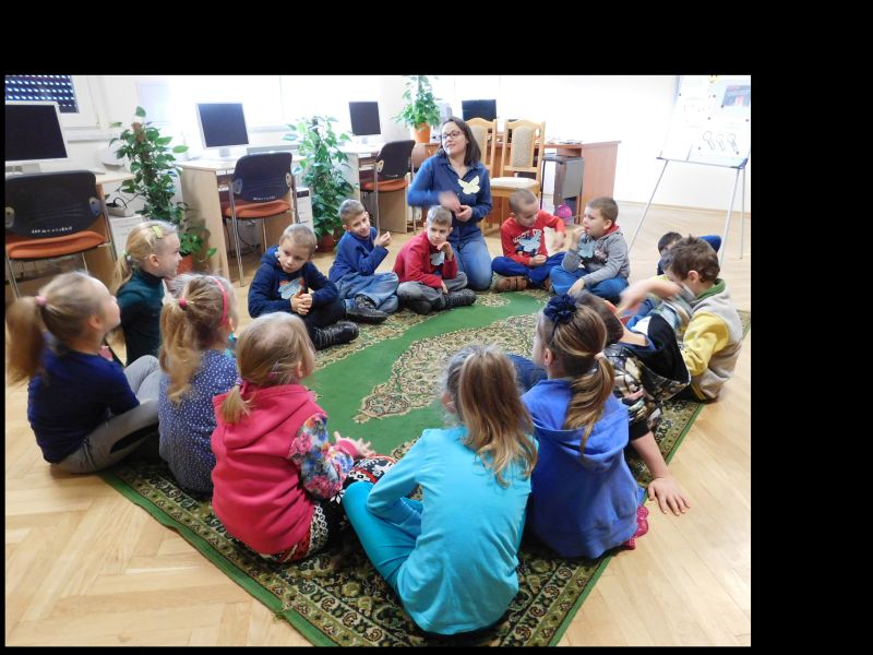 "Dobro. Im więcej go dajesz, tym więcej dostajesz”. Przekonali się o tym uczniowie z klasy I b, biorąc aktywny udział w zajęciach edukacyjno-zabawowych ,,Podaruj dobro innym”, które odbyły się w Bibliotece Pedagogicznej, w dniu 4 lutego. Zajęcia przeprowadziły p. Aleksandra Kopczyńska i p. Elżbieta Rafalska. Na początku dzieci usiadły w kręgu, przedstawiły się i powiedziały kilka zdań o sobie – jaki jest ulubiony kolor, co najbardziej lubią jeść.