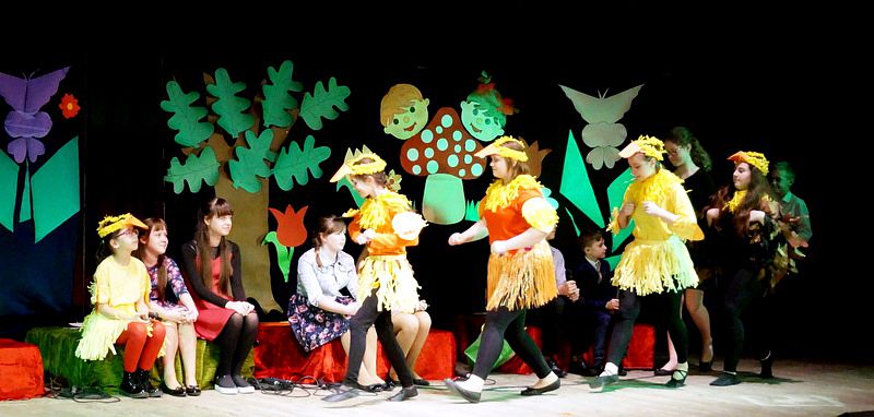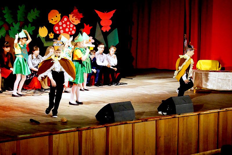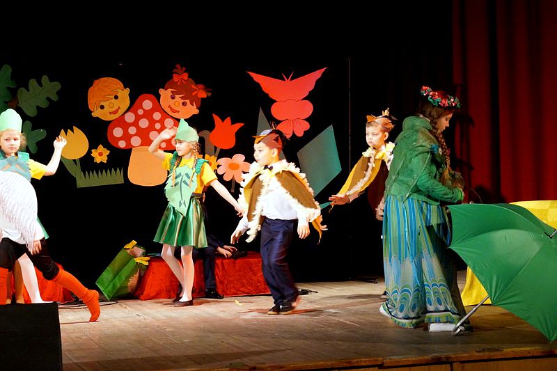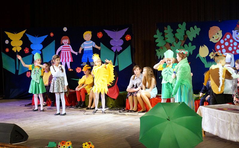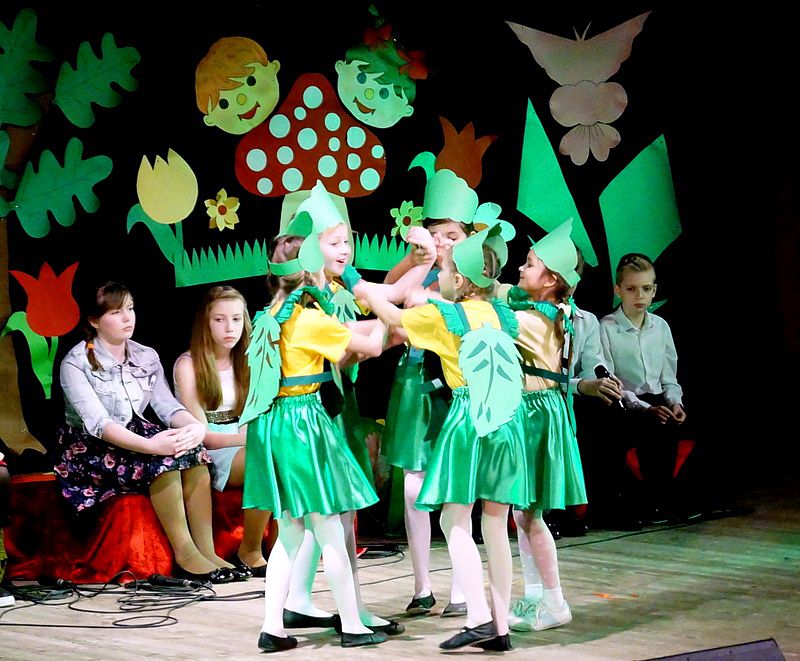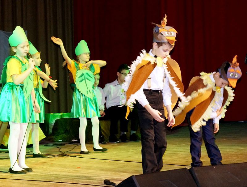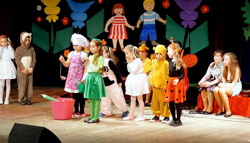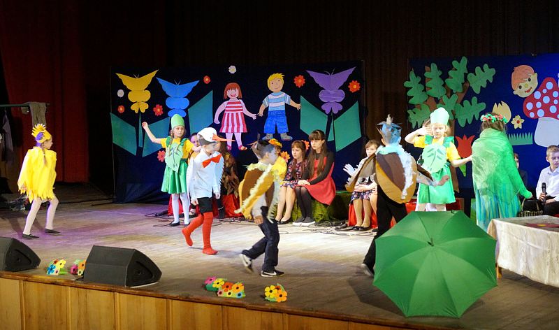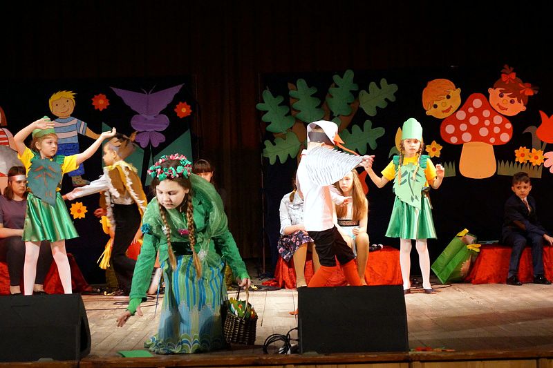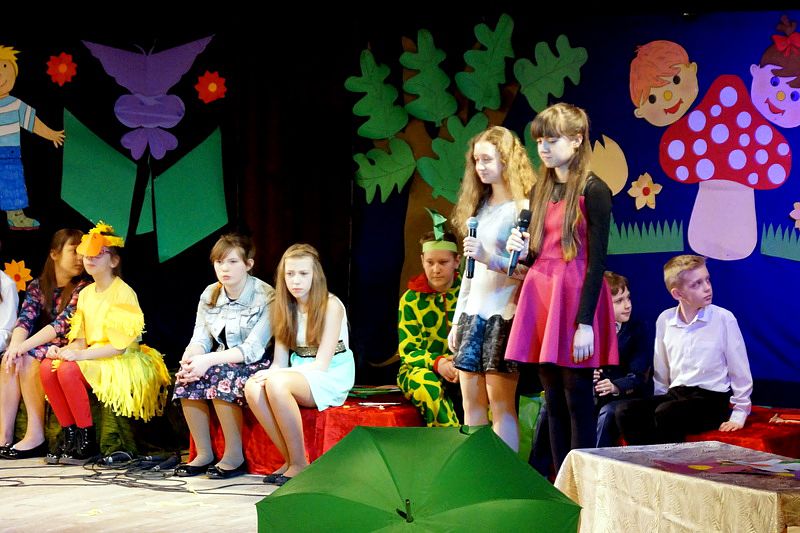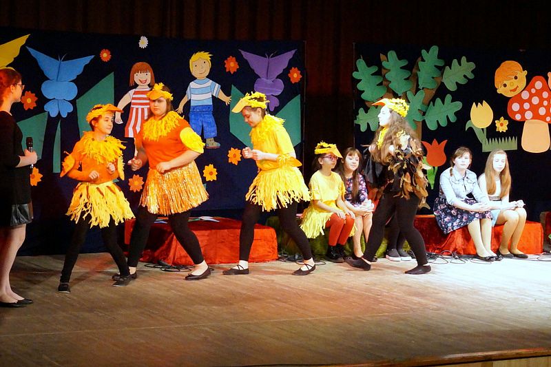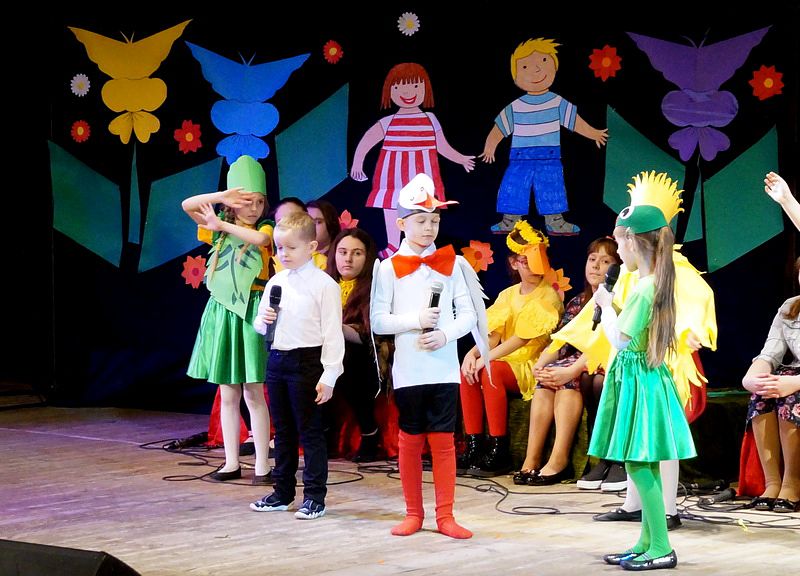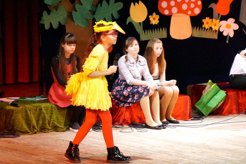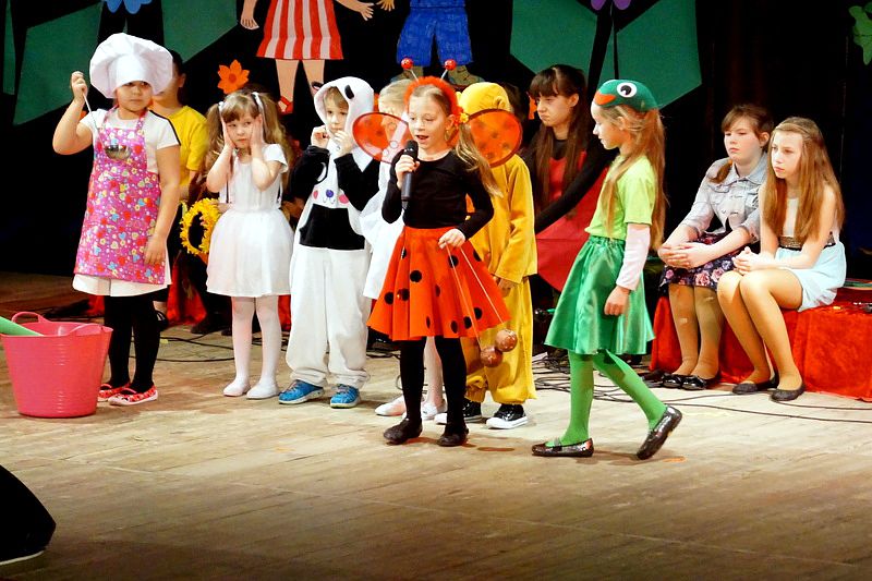 Mali aktorzy wyjątkowo dobrze czuli się w roli bohaterów stworzonych przez panią Skowron. Z humorem prezentowali zadania typowe dla Wróbelków, Słoneczka, Kurek, Koguta, Pani Wiosny, Bociana, Żabki, Biedronek, Chomiczków, innym razem wyjaśniali bajkowe problemy Grzecznej Kaczuszki, Odlotowej Sowy, Kluseczków z miseczki, Dinozurów, Łyżki i Widelca czy też Zupy na niby. Prezentowane wiersze budziły śmiech, pozytywne zaskoczenie, niekiedy podsuwały cenne wskazówki. W humorystyczne dialogi wpleciono piękny śpiew zespołu, wdzięczny taniec Gwiazdeczek i pląs Drzew.