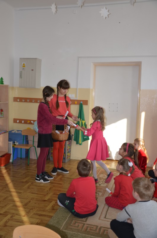 Każdy kto przechodził przez niego usłyszał miłe słowa i ciepłe życzenia. To było niezwykłe przeżycie. Przekonaliśmy się jak wiele dobra płynie z okazywania sobie życzliwości i zrozumienia. Po raz kolejny doświadczyliśmy w szkole wspaniałej zabawy płynącej z nauki.