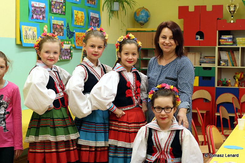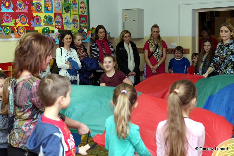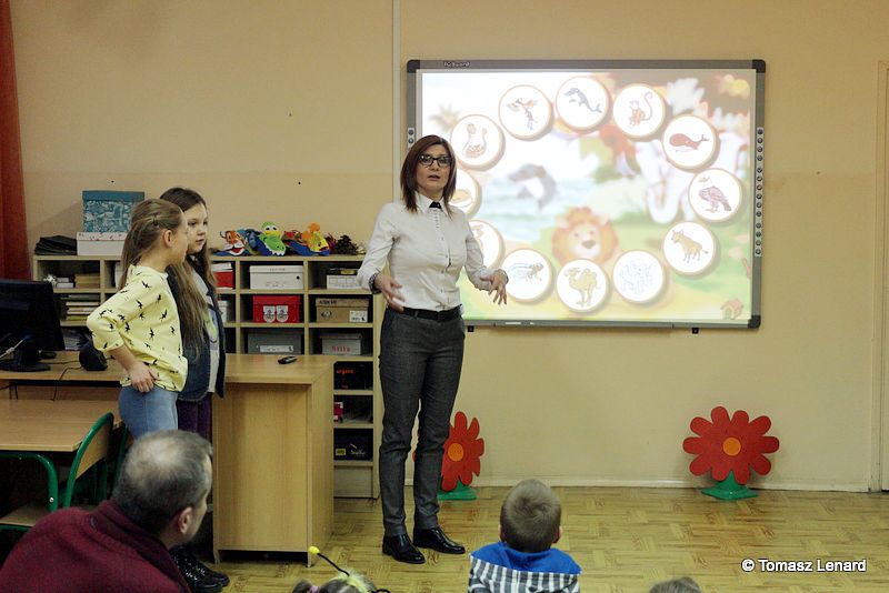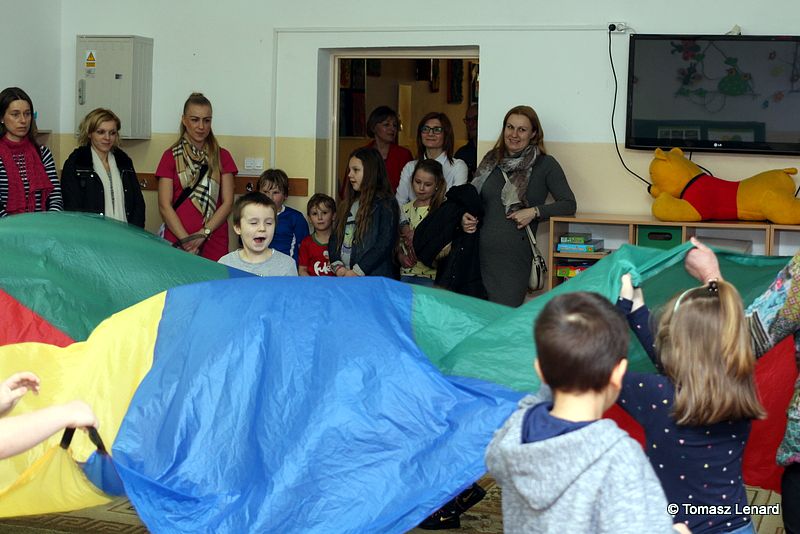 Dzień Otwarty zainaugurowali uczniowie kl. II b pod kierunkiem pani Jadwigi Hukowskiej w bardzo radosnej i wartkiej części artystycznej pod hasłem „Akademia Dziecięca Zamojska 16”. Potem dzieci wraz z rodzicami zwiedzali szkołę, uczestniczyli w przygotowanych dla nich różnorodnych i ciekawych zajęciach. Wzięli udział w warsztatach z rękodzieła wykonując różne ozdoby na stół wielkanocny. Wiele radości dostarczyły dzieciom zabawy z chustą animacyjną, z komputerem, tablicą interaktywną, zajęcia muzyczne „Mali muzykanci” , spotkanie z Pszczółką Mają na języku angielskim, a także tańce w wykonaniu maluchów, w których uczestniczyli mali goście. Podczas zajęć plastycznych poszukiwały Pani Wiosny.