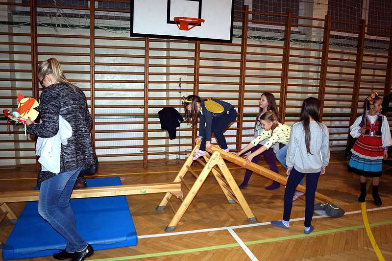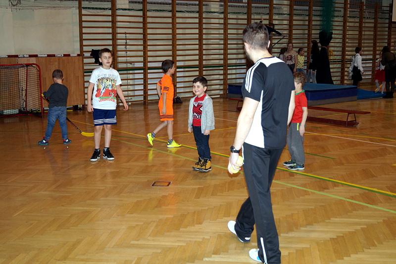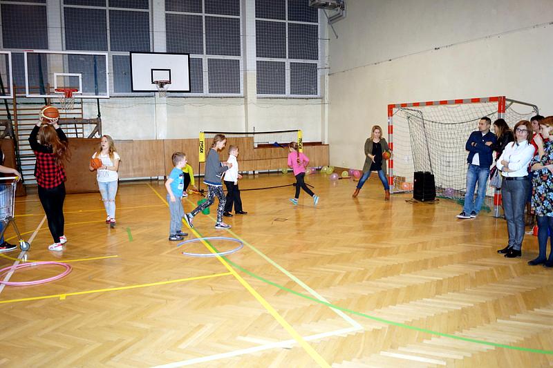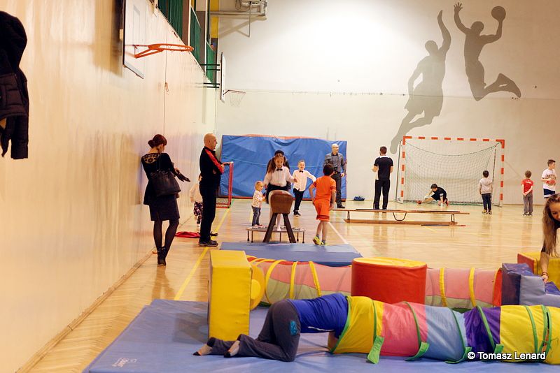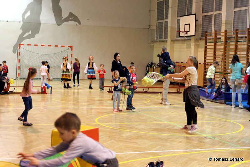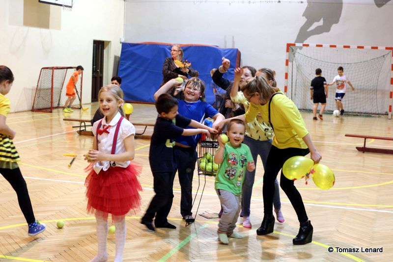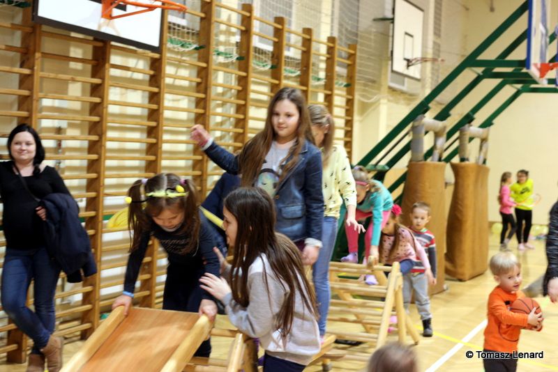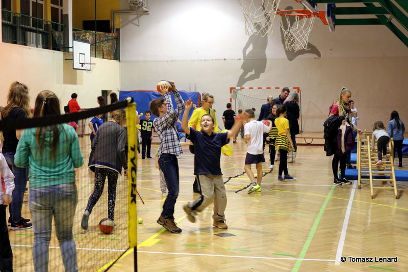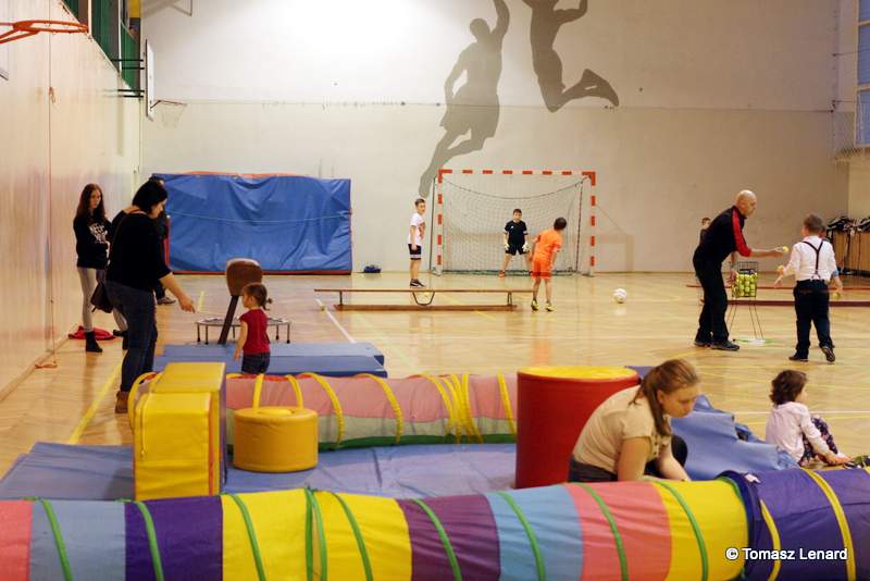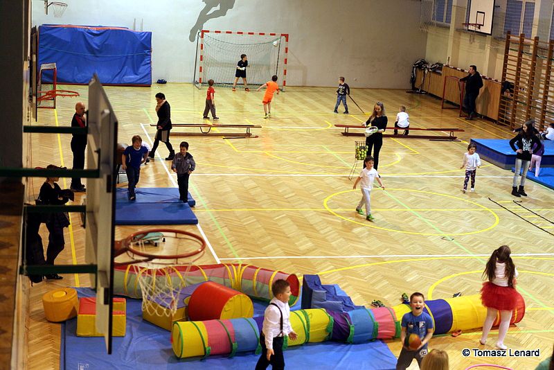 Na zakończenie dzieci wzięły udział w zajęciach rekreacyjno – sportowych w sali gimnastycznej. Cieszyły się one ogromnym powodzeniem. To tutaj mali goście zażywały tak dla nich bardzo ważnego ruchu i wykazywały się swoją sprawnością fizyczną. Pokonywały tory przeszkód, skakały na trampolinie, grały w badmintona, minihokeja, pełzały w tunelu w kształcie kolorowej dżdżownicy, korzystały ze zjeżdżalni i innych atrakcji sportowych.