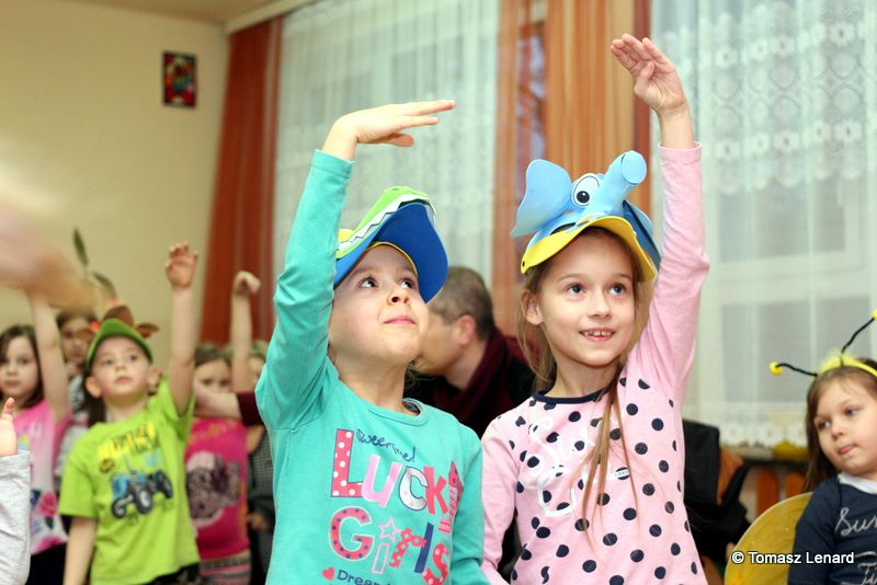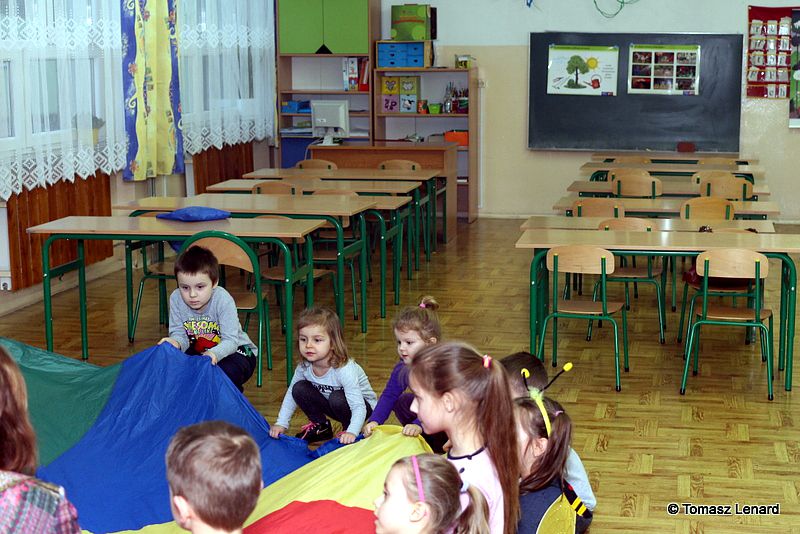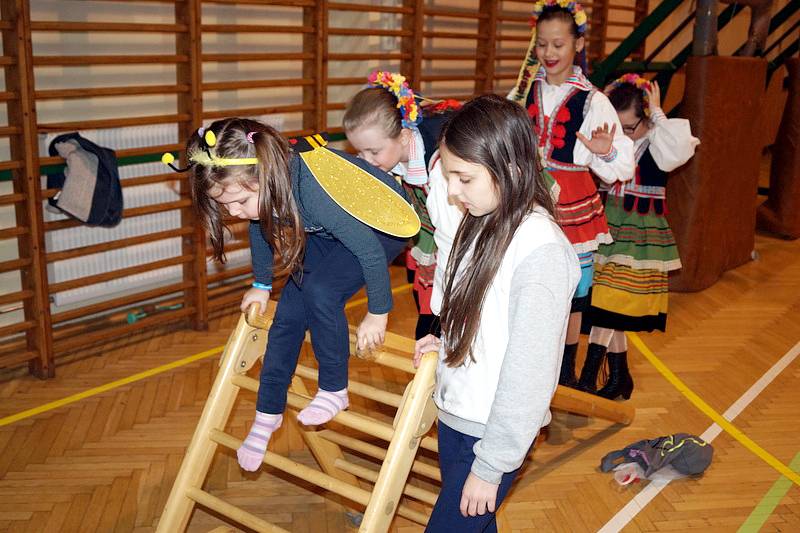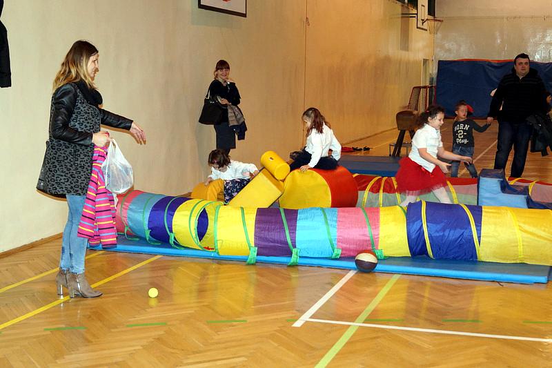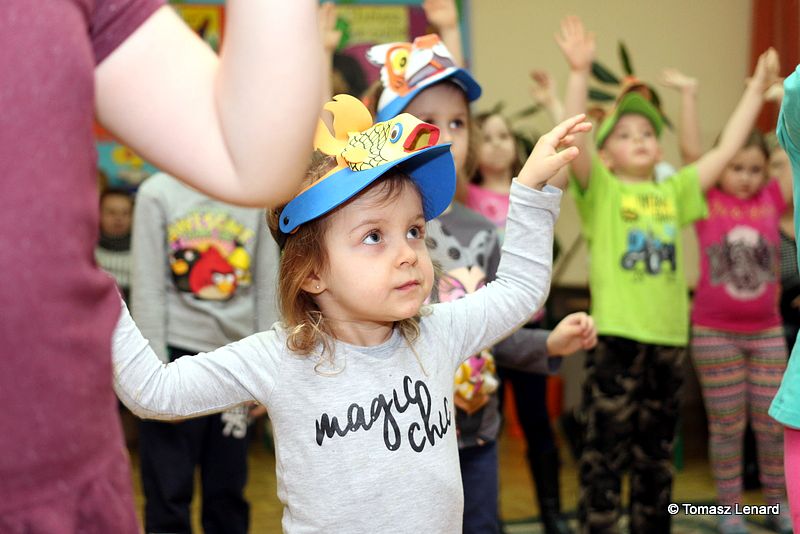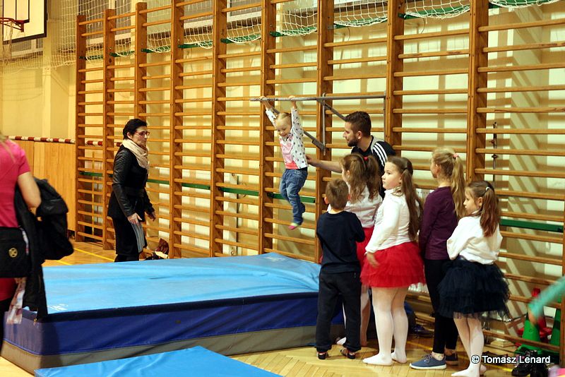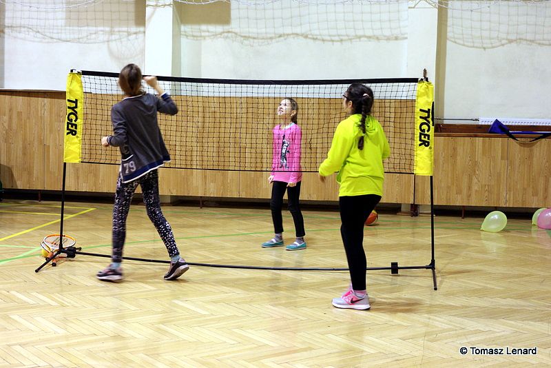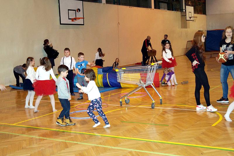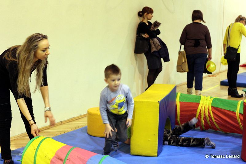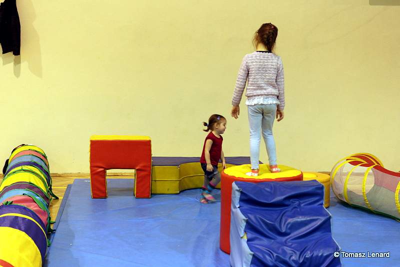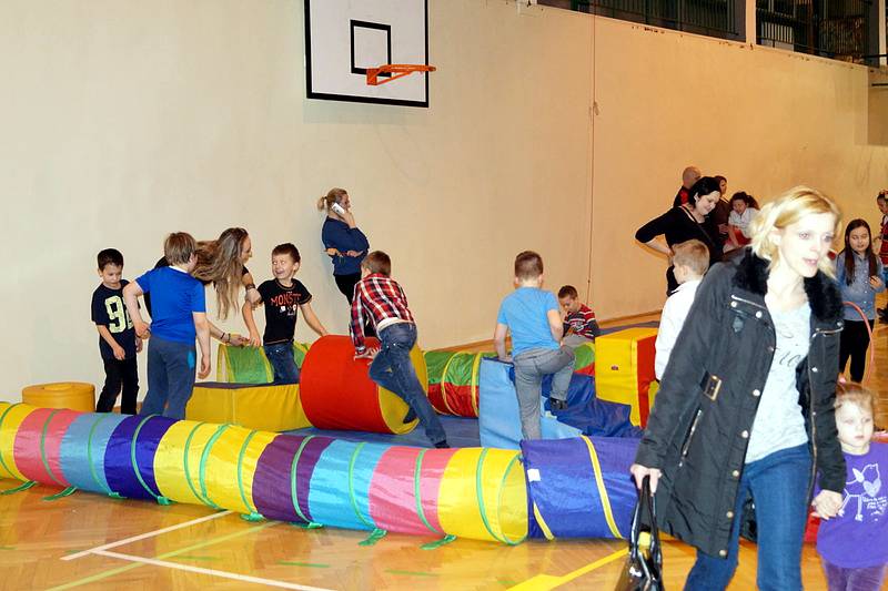 Na zakończenie dzieci wzięły udział w zajęciach rekreacyjno – sportowych w sali gimnastycznej. Cieszyły się one ogromnym powodzeniem. To tutaj mali goście zażywały tak dla nich bardzo ważnego ruchu i wykazywały się swoją sprawnością fizyczną. Pokonywały tory przeszkód, skakały na trampolinie, grały w badmintona, minihokeja, pełzały w tunelu w kształcie kolorowej dżdżownicy, korzystały ze zjeżdżalni i innych atrakcji sportowych.