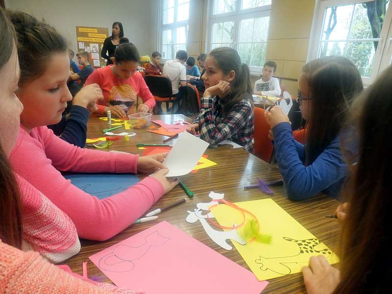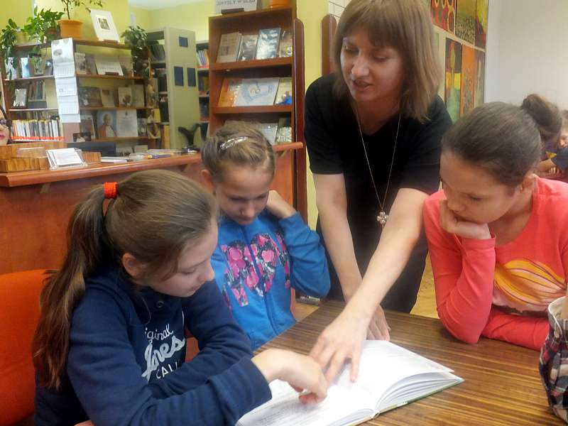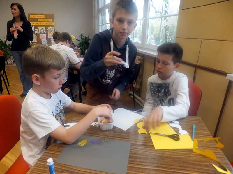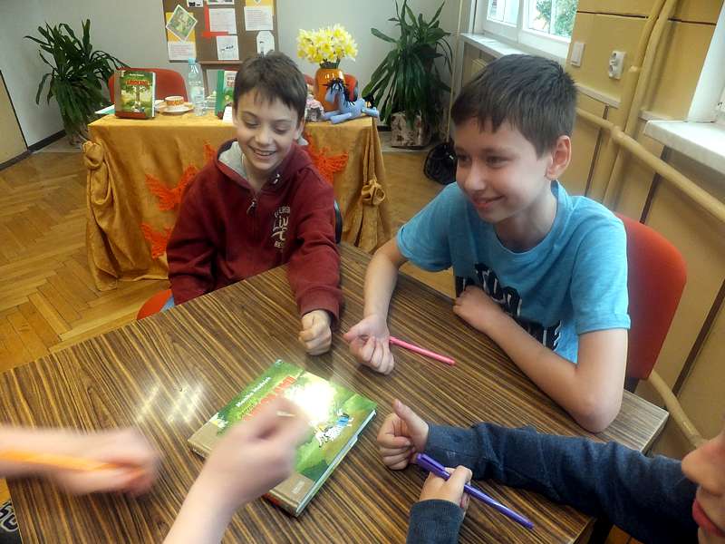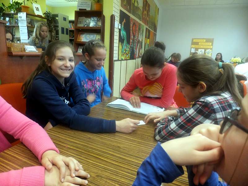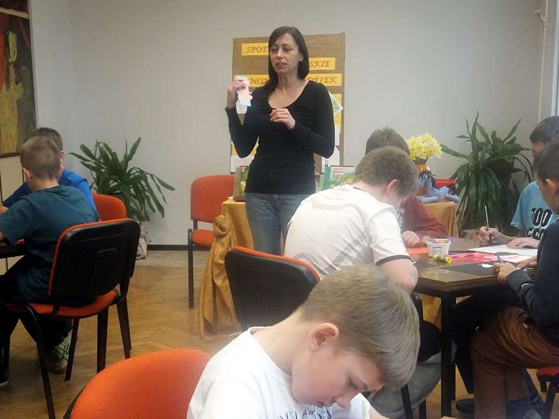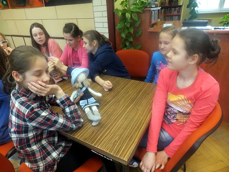 Dnia 11 kwietnia klasa Va wraz z nauczycielem języka polskiego udała się do Biblioteki Pedagogicznej na spotkanie z Moniką Madejek - pisarką „kobietą szczęśliwą, której życie co dzień zaczyna się od nowa”. Z matką, miłośniczką aniołów i przedmiotów z duszą, artystką. Pani Monika, jak na współczesną kobietę przystało, oprócz tworzenia dzieł składających się na literaturę piękną, prowadzi blog kulinarny, z którego można m. in. dowiedzieć się, jak w kilkanaście minut możemy przyrządzić przepyszne serowe racuszki z malinami.