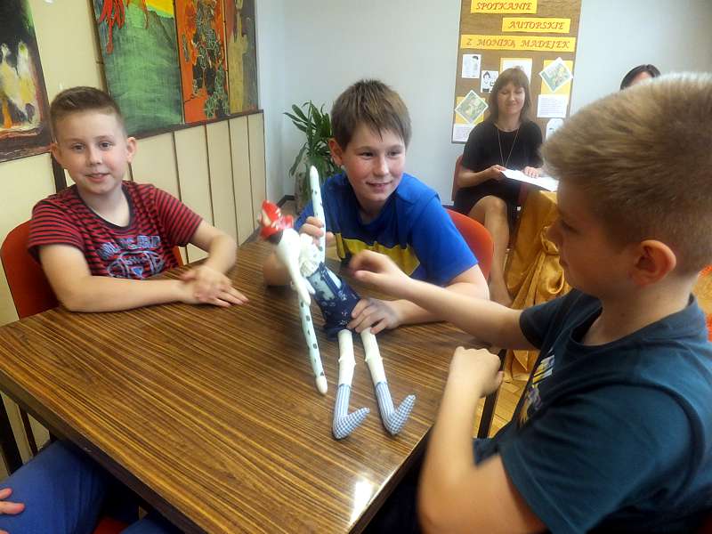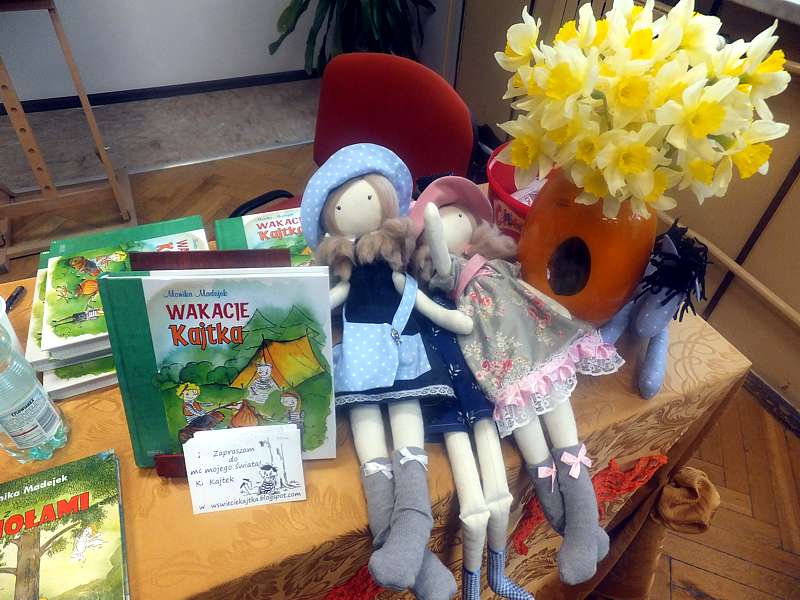 Kolejną pozycją, o której była mowa na spotkaniu, były "Wakacje Kajtka”. Dla trójki bohaterów opowieści to okres, w którym nie ma czasu na nudę. Wszystko w lekturze zaczyna się od kursu tańca. Ale co zrobić, jeżeli nogi na parkiecie się plączą? Oprócz książek spore zainteresowanie wzbudziły własnoręcznie wykonane przez panią Monikę maskotki i lalki.