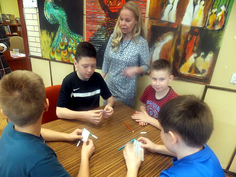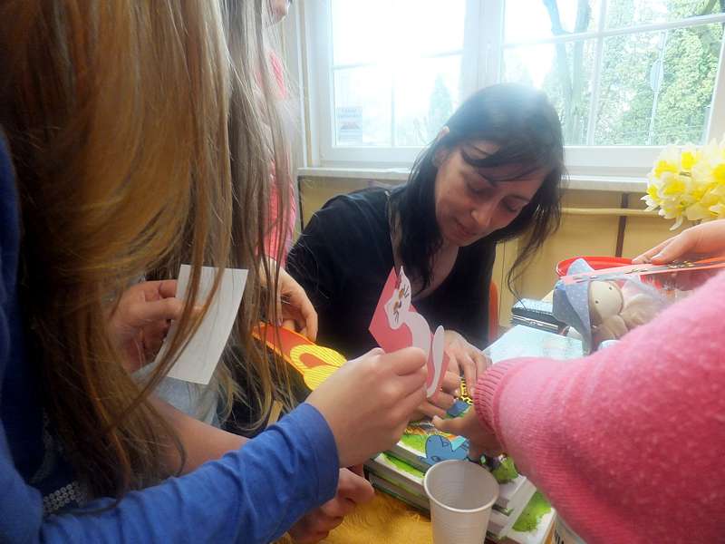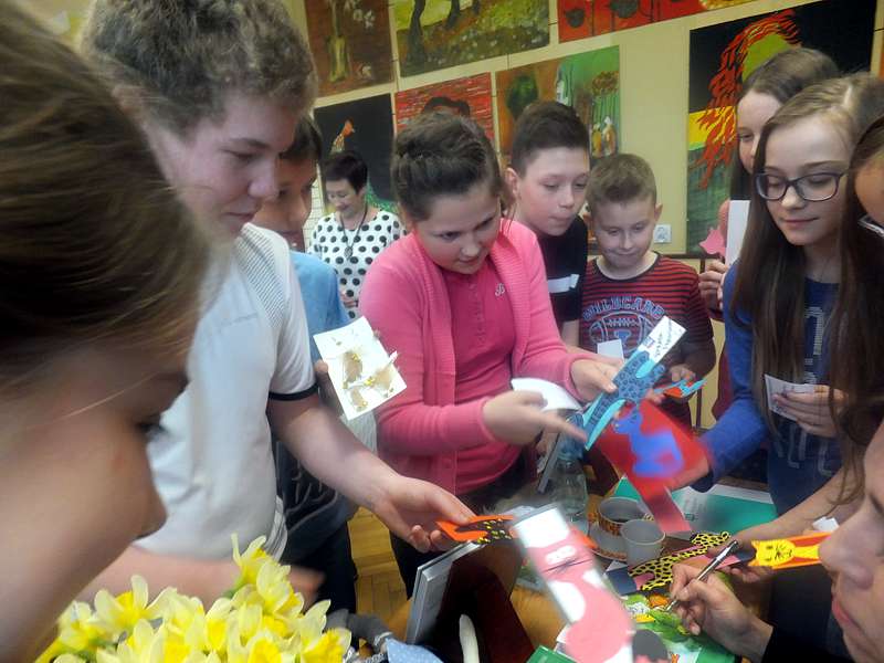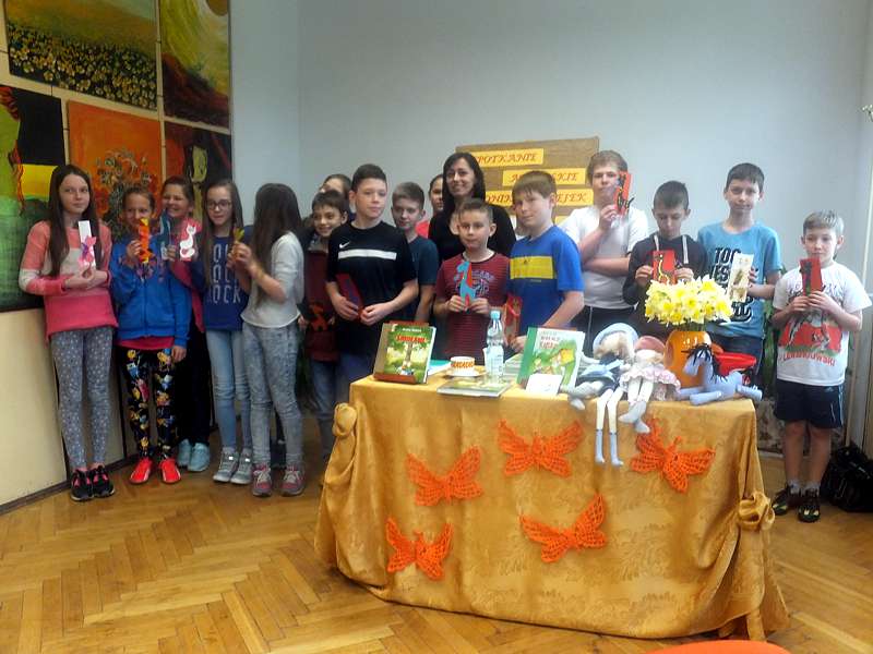 Pod koniec spotkania dzieci mogły wykonać piękne zakładki do książek, a także poprosić o autograf od pisarki. Zwieńczeniem całości były podziękowania dla Gościa, Pań pracujących w Bibliotece Pedagogicznej i wspólne zdjęcia.