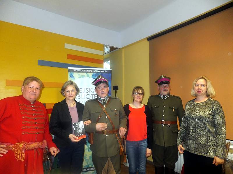 Przyszłym czytelnikom Komuda naświetlił wątki. Niektóre z nich wiązały się z naszym miastem, w którym to mjr Henryk Dobrzański stacjonował jako znany, wybitny żołnierz i olimpijczyk. Autorowi "Hubala" towarzyszyli przedstawiciele Stowarzyszenia Szwadronu Ziemi Hrubieszowskiej im. 2 Pułku Strzelców Konnych, którzy również opowiadali o minionych latach i patronie naszej szkoły.
