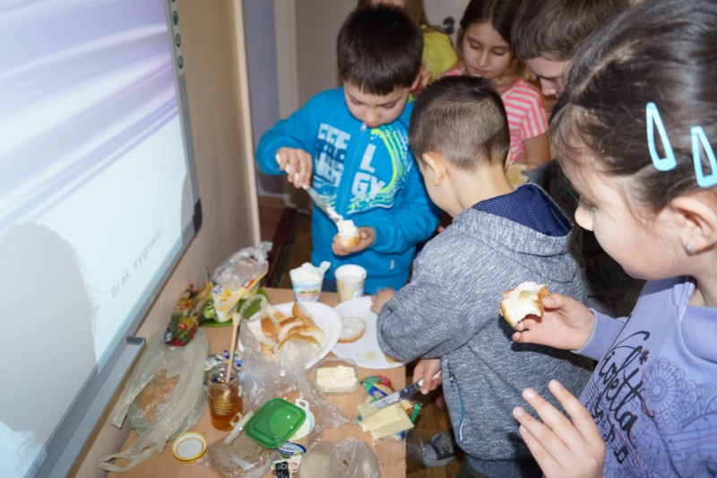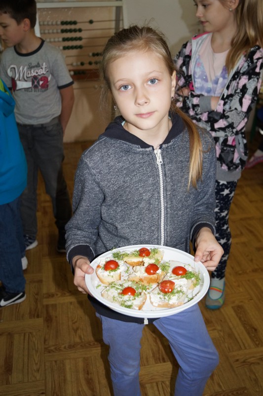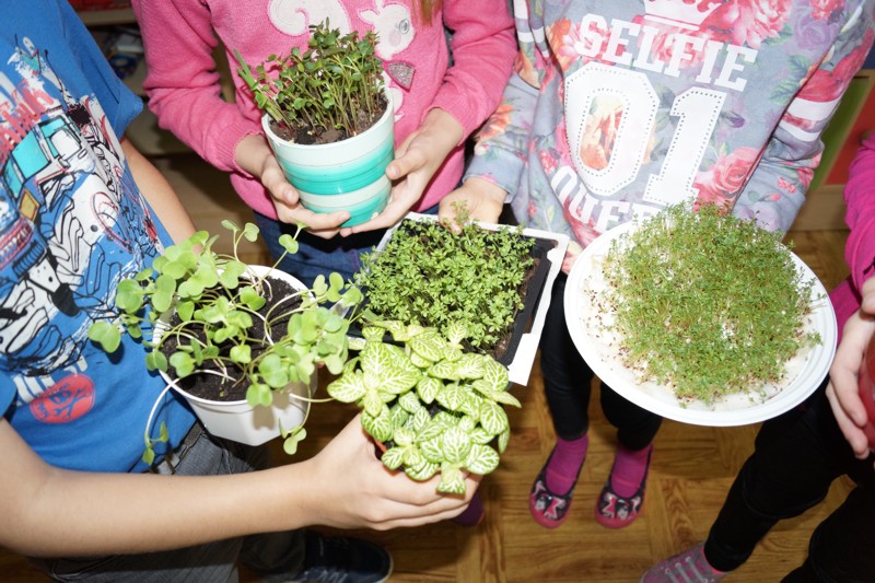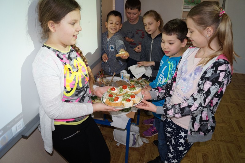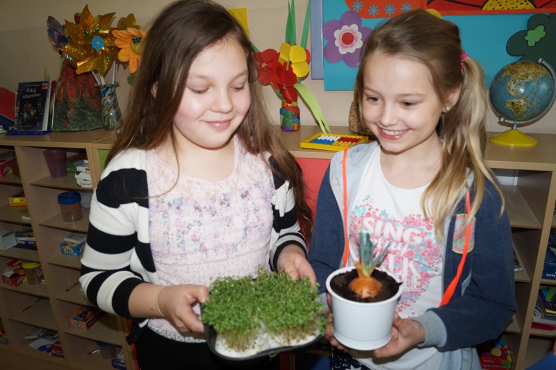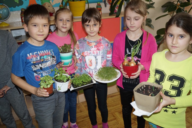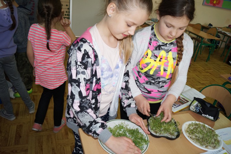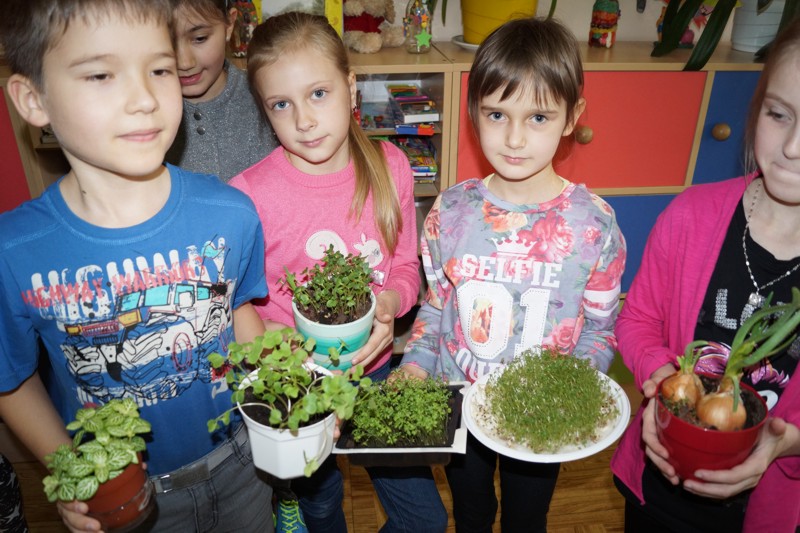 Tekst tej rymowanki wyjaśnia, co się działo w sali lekcyjnej uczniów klasy II c. Efektem systematycznej pielęgnacji były smaczne nowalijki, wśród nich rzeżucha i szczypiorek, odpowiednie na drugie śniadanie. Z nich uczniowie przygotowali potrawy, a potem radośnie zjedli drugie śniadanie. Dwa tygodnie później kilkuosobowe grupy tworzyły plakaty naszej planety Ziemi, ilustrujące różnorodne okazy przyrodnicze.