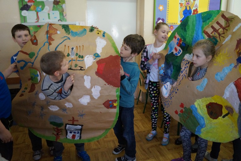 Dodatkowo, drużyny opracowały hasła o treści ekologicznej. Wymienione formy pracy przeplatały się improwizacją ruchową i śpiewem piosenek o bocianach, przejażdżkach rowerowych, a także zabawach na świeżym powietrzu.