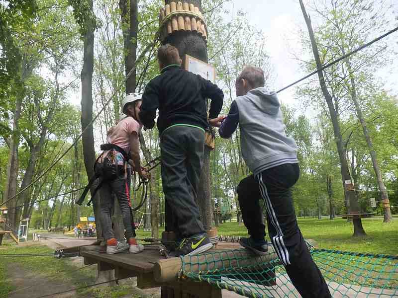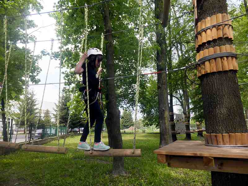 Uczestnicy zajęć po zapoznaniu się z regulaminem mogli zmierzyć się z 41 przeszkodami. Wśród nich na szczególną uwagę zasługuje most tybetański. Ciekawe są również takie elementy jak: beczka, platforma nadziei czy ścianka wspinaczkowa. Uczniowie po przejściu wybranych tras do szkoły powrócili pełni pozytywnych emocji i niezapomnianych wrażeń.