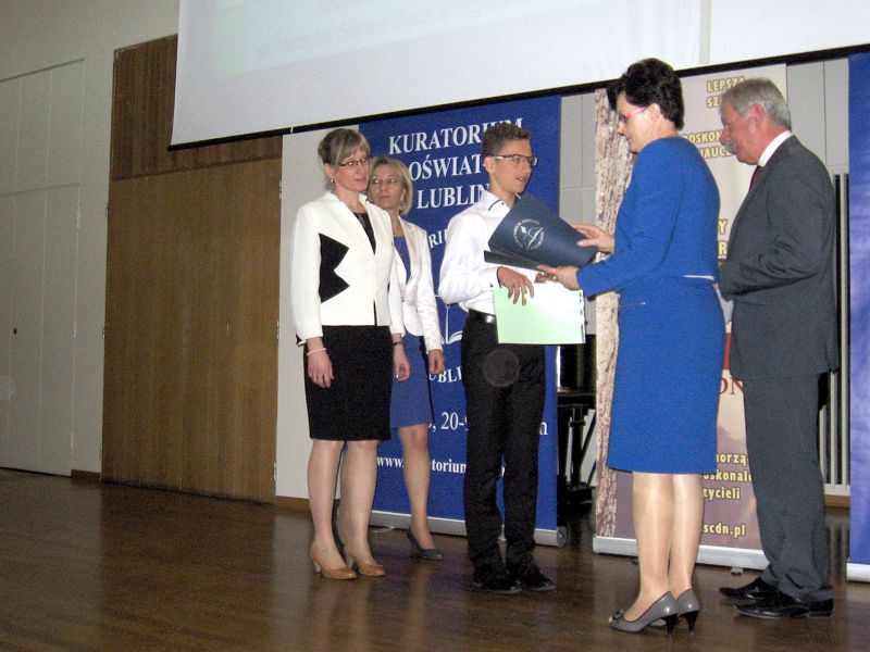 W piątek, 13 maja 2016 roku w Lublinie odbyła się UROCZYSTA GALA podsumowująca konkursy przedmiotowe i tematyczne organizowane przez Lubelskiego Kuratora Oświaty. Uroczystość miała miejsce w auli Stefana Kardynała Wyszyńskiego Katolickiego Uniwersytetu Lubelskiego Jana Pawła II. W kategorii szkół podstawowych ponad 300 uczniów otrzymało nagrody i dyplomy z rąk Pani Kurator Teresy Misiuk. Tomasz Budzyński uczeń klasy VI „a” Szkoły Podstawowej nr 3 im. mjr. Henryka Dobrzańskiego „Hubala” został laureatem w Konkursie Matematycznym.
