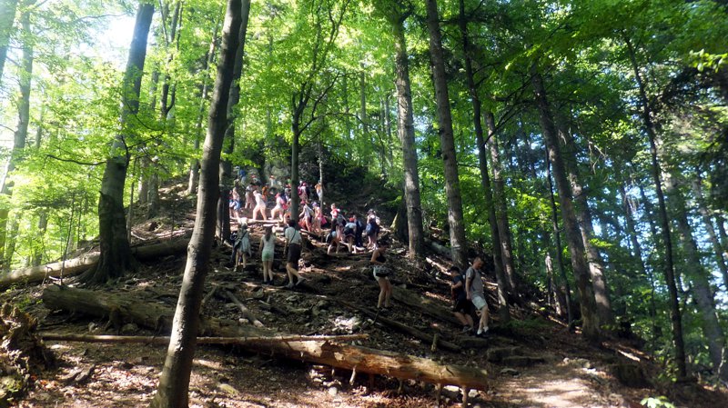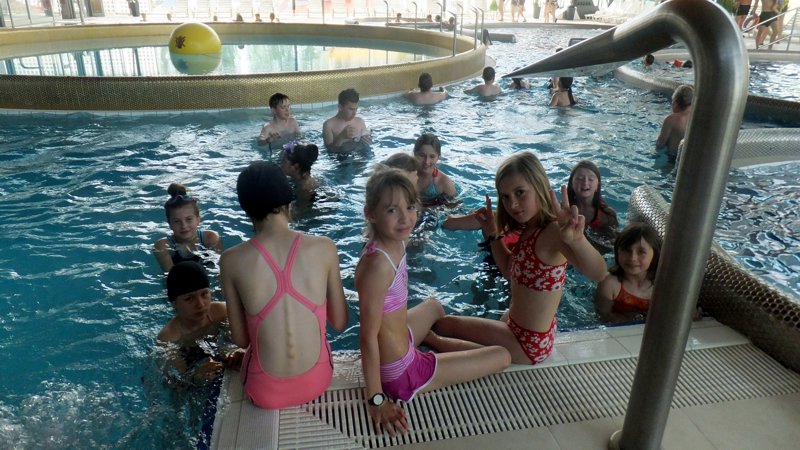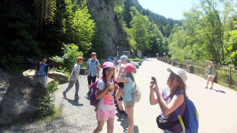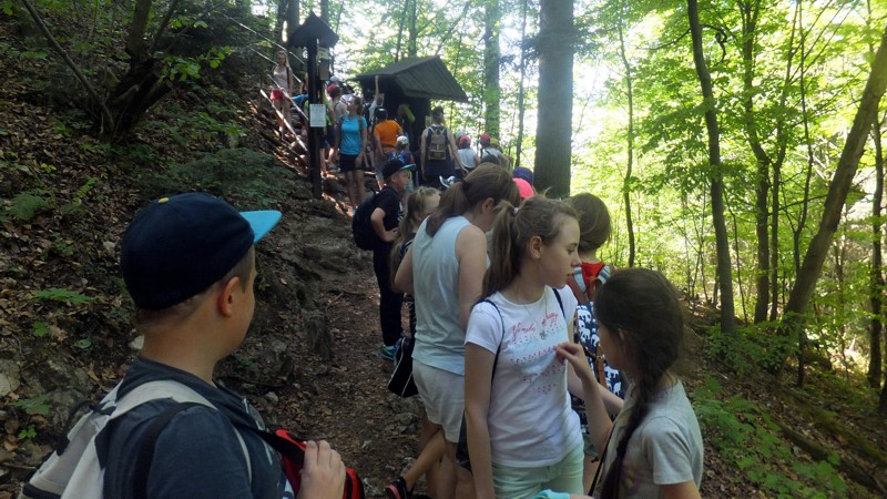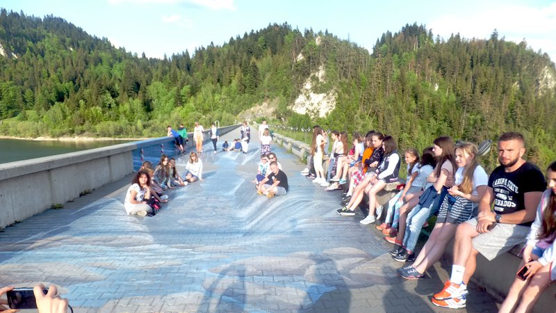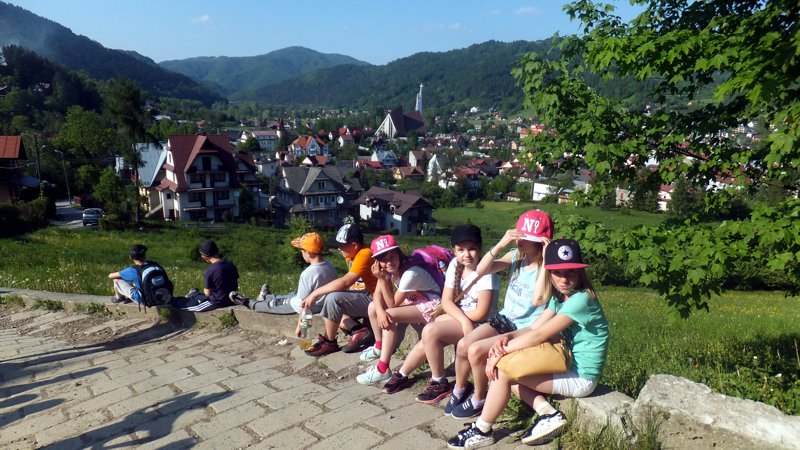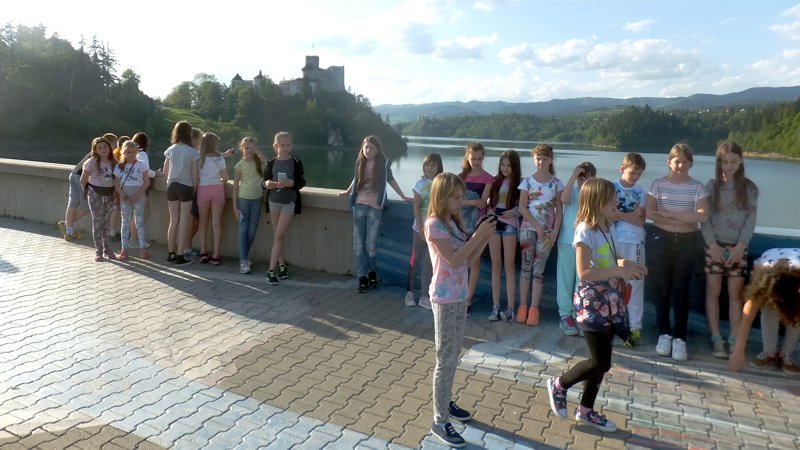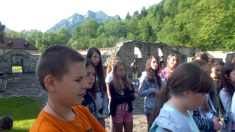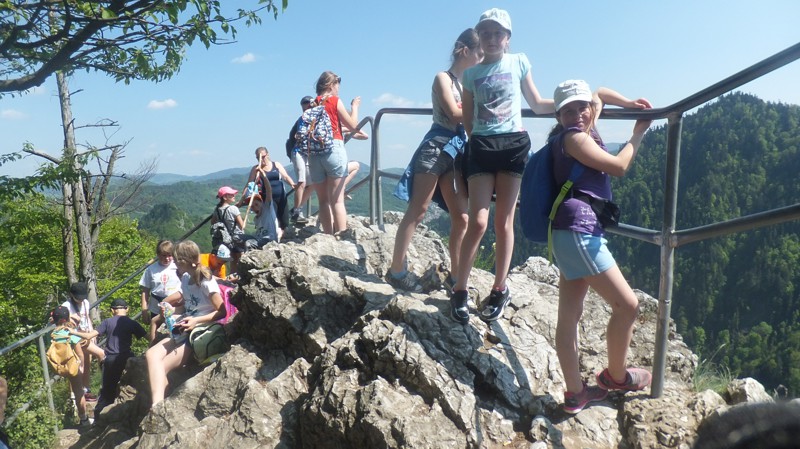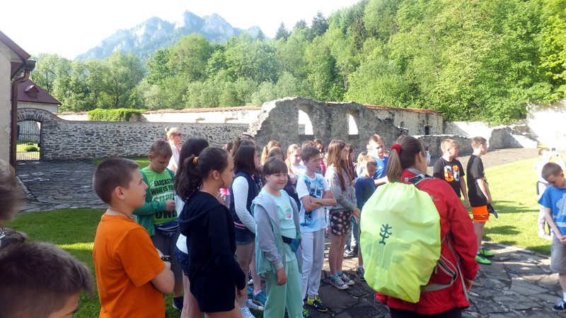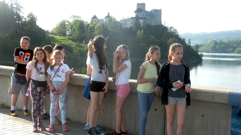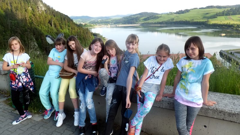 Niezwykły widok zrekompensował nasz trud. Później szliśmy wciąż dalej, podziwiając jednocześnie piękno Pienińskiego Parku Narodowego. Po zejściu z gór udaliśmy się do Krościenka, a stamtąd do Niedzicy. Po rozlokowaniu się w ośrodku wypoczynkowym poszliśmy się na obiadokolację, a później – na zielone i piaszczyste boiska. Po przespanej nocy czekał na nas wyjazd na Słowację, do Popradu. To tutaj znajduje się słynny wśród Polaków park wodny – AquaCity. Po godzinach spędzonych w wodach termalnych, zabawie z rówieśnikami udaliśmy się do centrum miasteczka, by poznać nieznane oblicze Słowacji. Wracając, zajechaliśmy jeszcze do Czerwonego Klasztoru, w którym mieszkali niegdyś zakonnicy, słynący z wytwarzania lekarstw, przepisywania tekstów religijnych. Po ponownym przyjeździe do Niedzicy udaliśmy się na szczyt zapory wodnej, by z bliska przyjrzeć się murom zamku leżącego nad Jeziorem Czorsztyńskim i niezwykłym, iluzjonistycznym rysunkom na koronie. Po powrocie do ośrodka czekały na nas kolejne atrakcje: grill, gry na trawiastych boiskach oraz szalona dyskoteka. Ostatni dzień stał pod znakiem Pienińskiego Muzeum i Szczawnicy. Będąc w muzeum, zobaczyliśmy z bliska zwierzęta żyjące w pienińskich lasach, a także film o faunie i florze. Później w Szczawnicy udaliśmy się kolejką na Palenicę. Po zjeździe czekał na nas spacer po mieście.