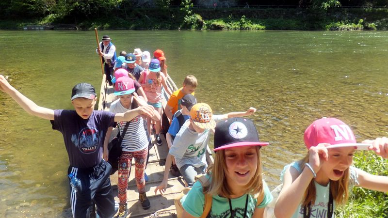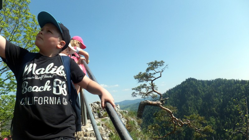 Dnia 23 maja uczniowie z klas Vb, Vc i IVb udali się na trzydniową wycieczkę w góry . Pierwszego dnia, po dojeździe do Szczawnicy, udaliśmy się na przystań. To tu czekała na nas łódka, dzięki której mogliśmy przedostać się na drugi brzeg Dunajca. Po wyjściu na ląd wraz z panią przewodnik ruszyliśmy zdobywać pienińskie szczyty. Po długiej wędrówce dotarliśmy na Sokolicę.