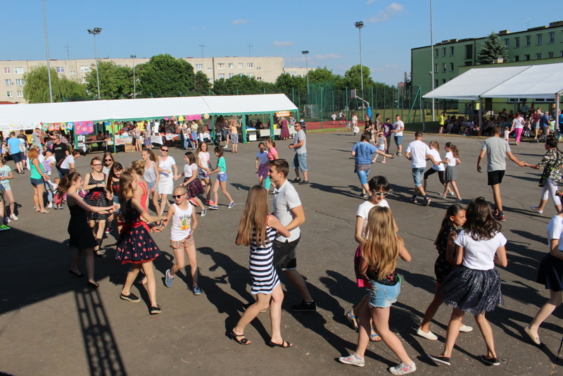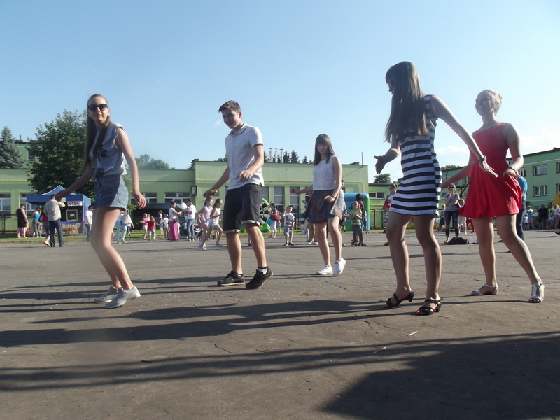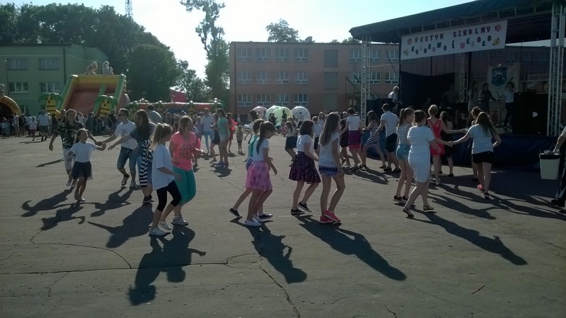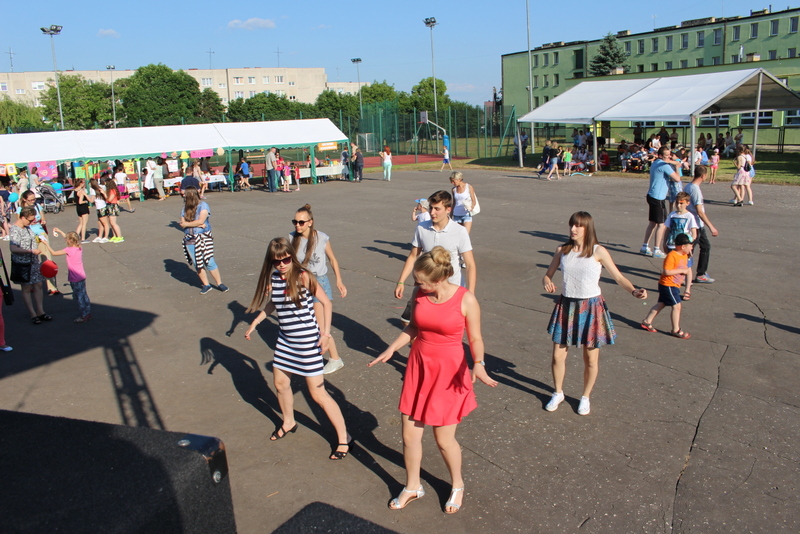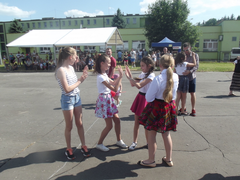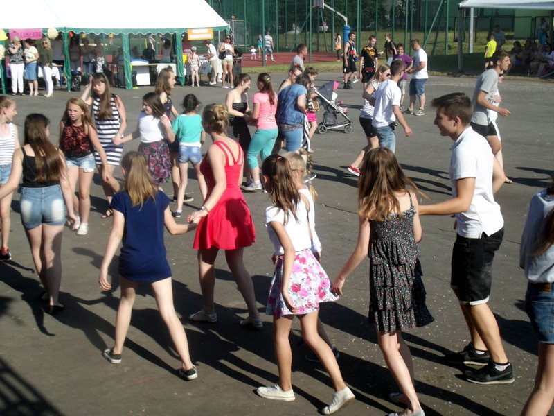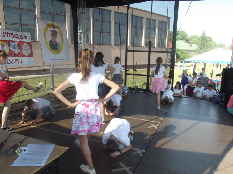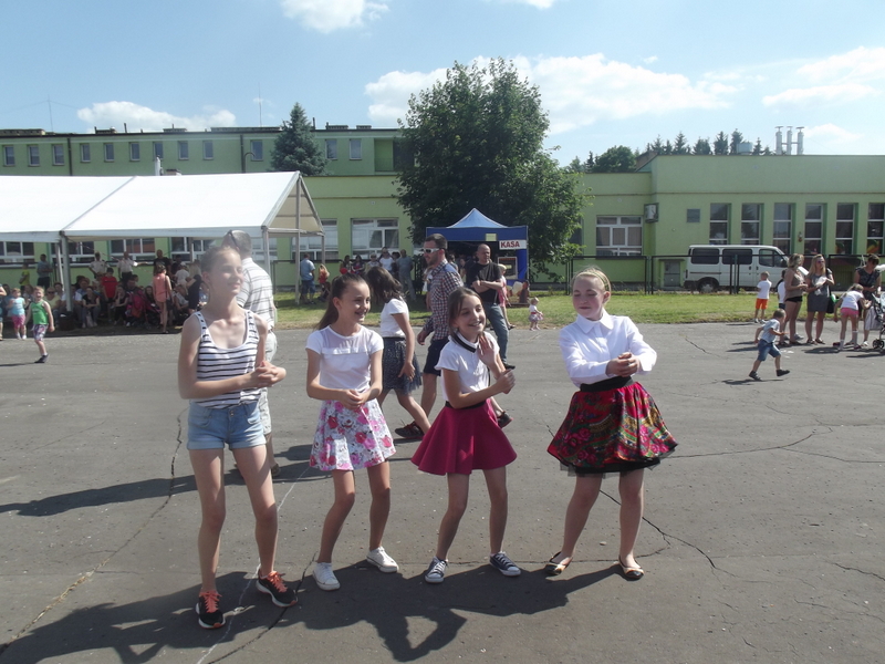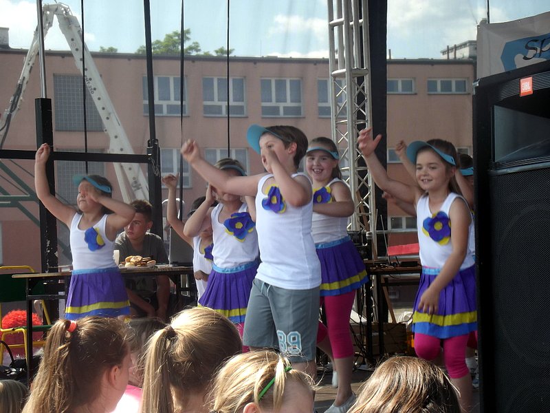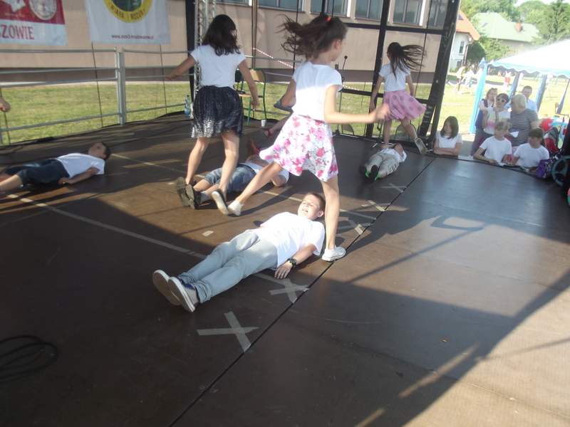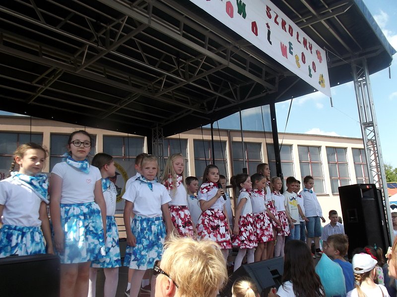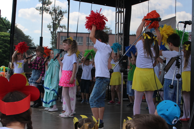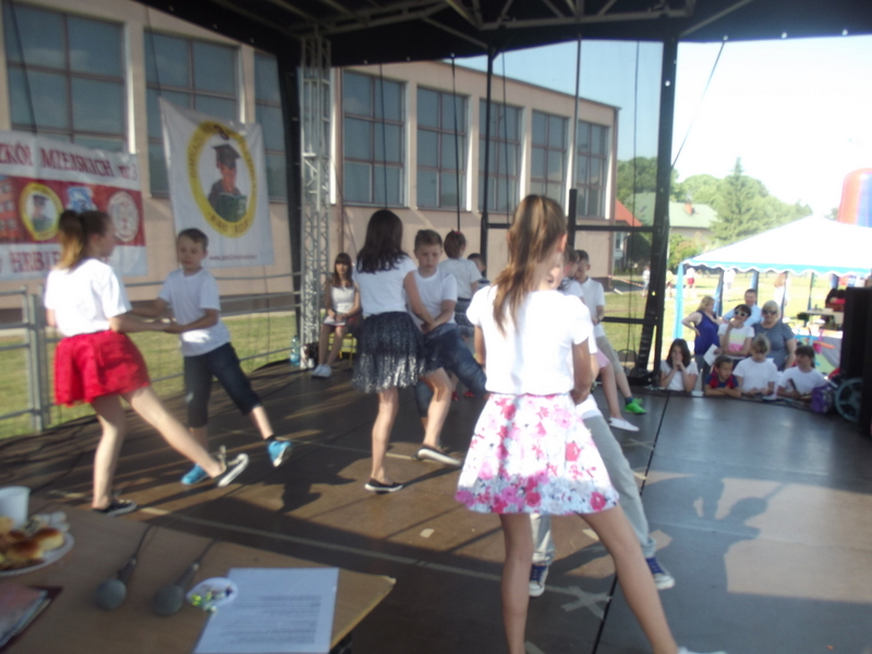 Przez cały czas trwania festynu na scenie prezentowały się poszczególne klasy szkoły podstawowej i gimnazjum oraz zespół wokalny i soliści. Dzieci biorące udział pokazały swoje umiejętności gry na instrumentach, śpiewu i tańca a na boiskach predyspozycji sportowych. W przerwach między występami nie zabrakło „radosnego pląsu” w rytmie „Belgijki”, „Skrzypka” czy „Czekolady”.